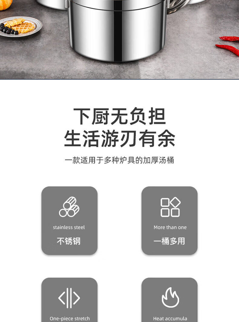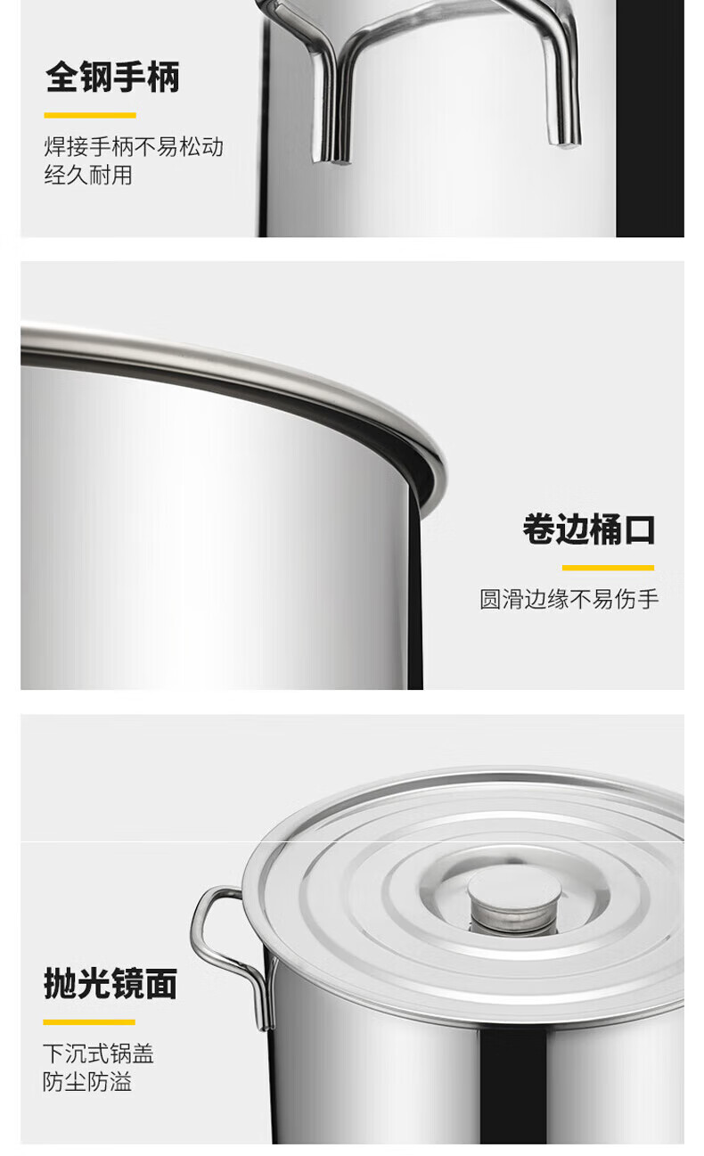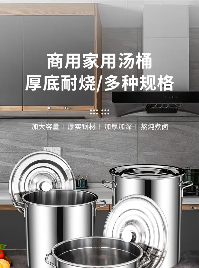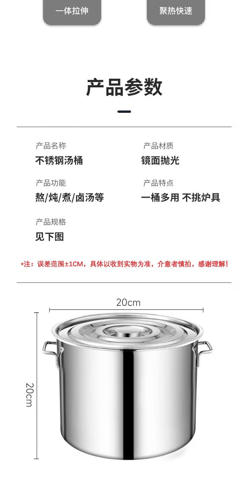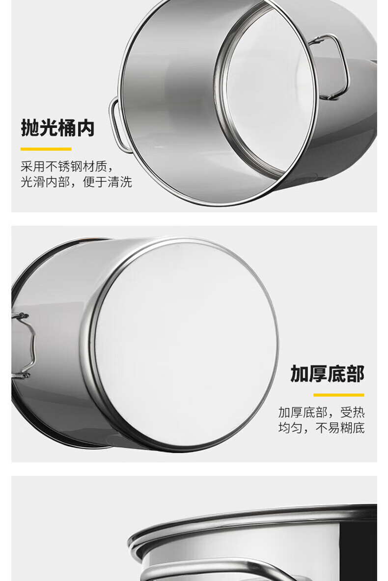 Edo stainless steel bucket with lid commercial soup bucket thickened large capacity soup pot brine bucket diameter 20 height 20cm 5 liters