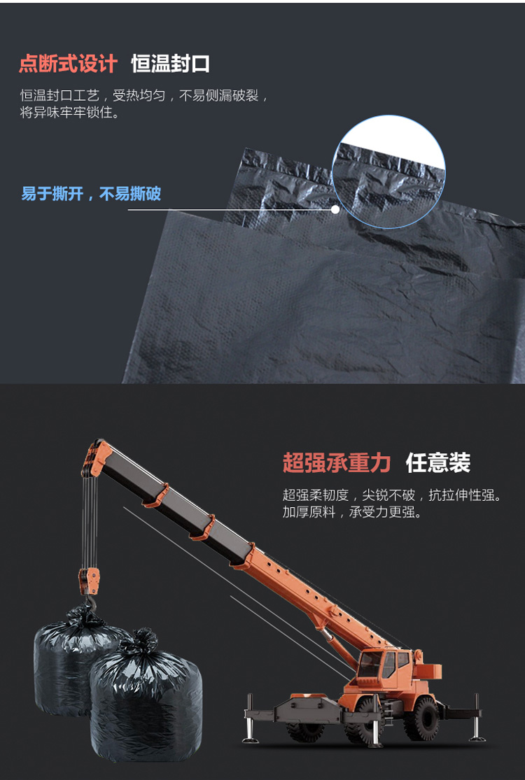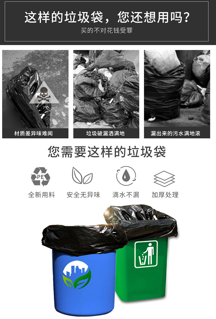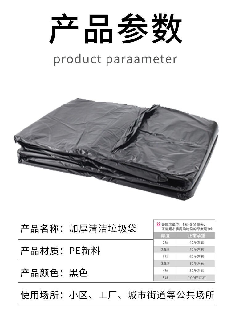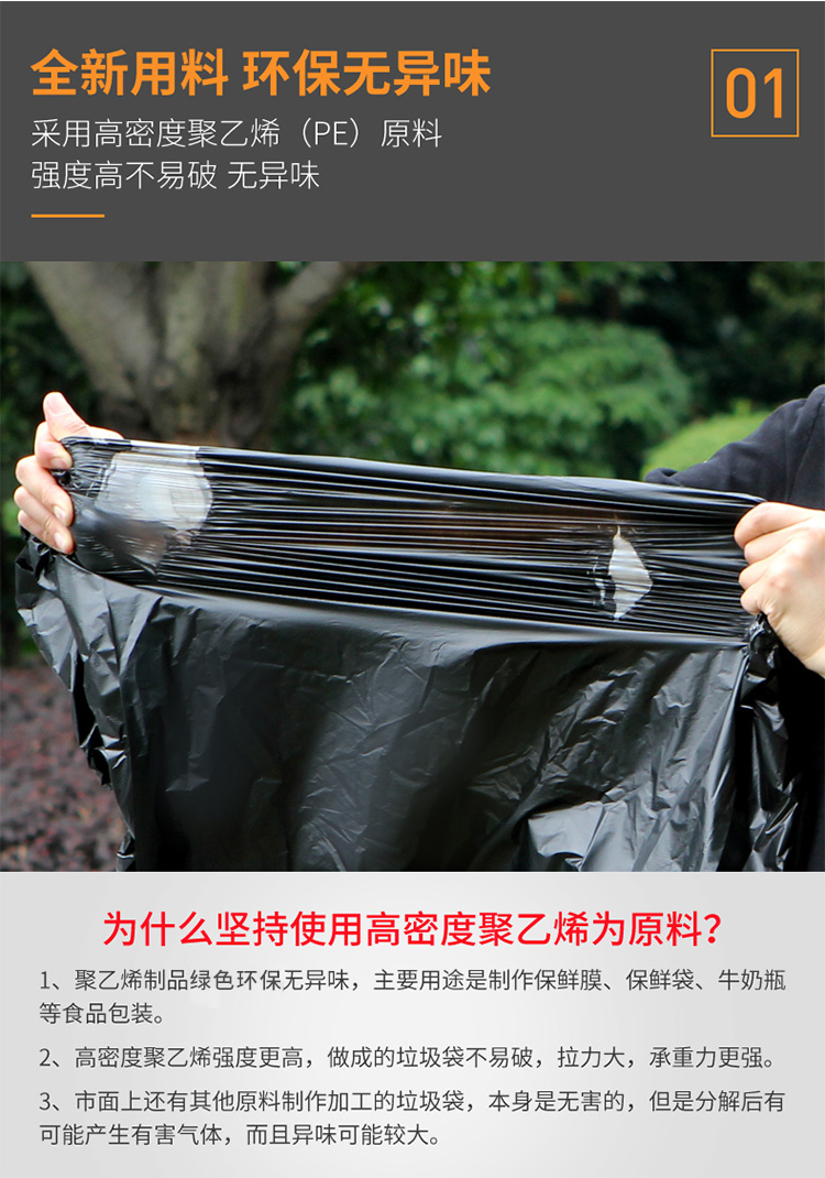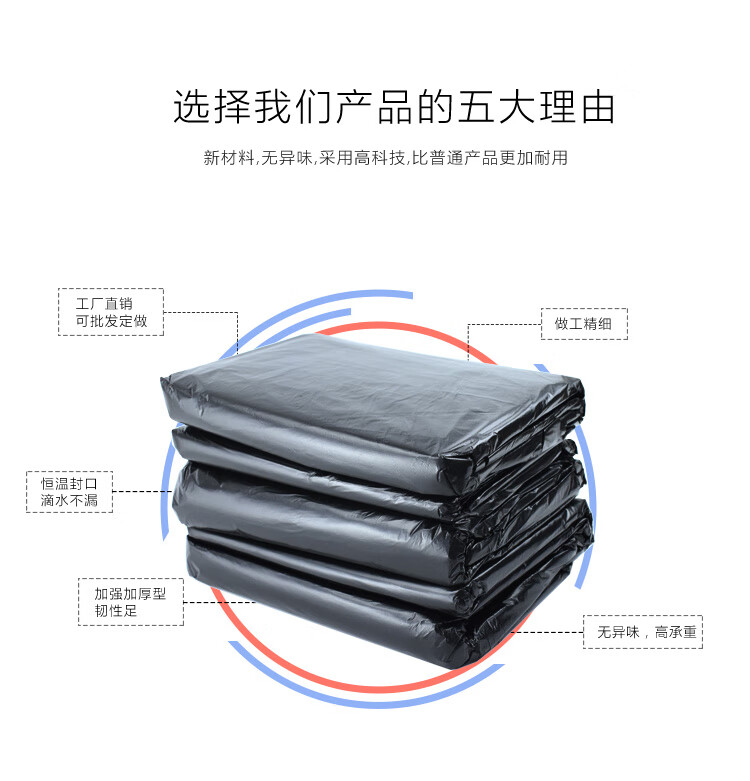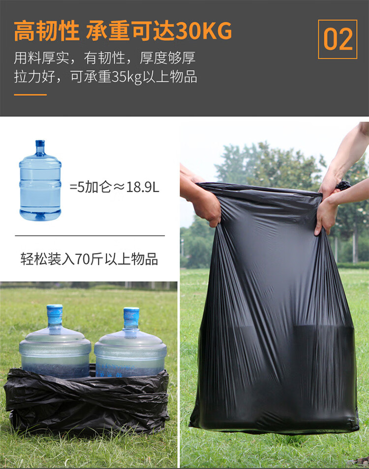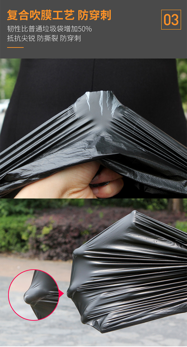 Jiujie garbage bag large thickened black point-break hotel property sanitation plastic bag flat mouth garbage bag 60*70cm3S thickened 50 pieces