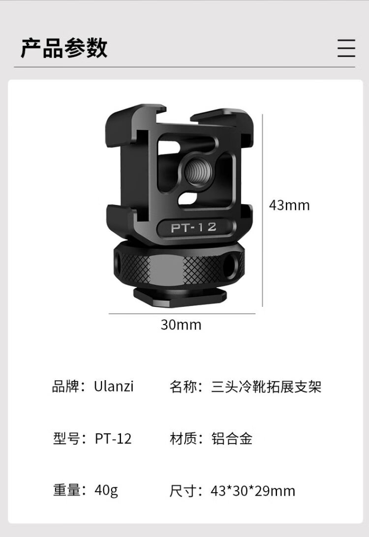 Ulanzi excellent basket PT-12 metal three-head hot and cold shoe expansion bracket mobile phone stabilizer SLR camera VLOG photography expansion accessories external fill light microphone