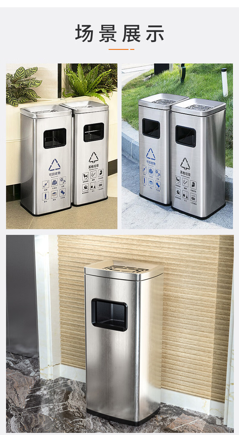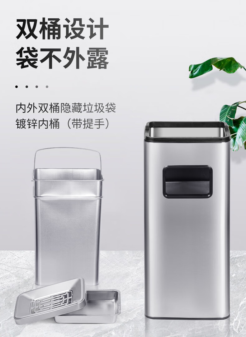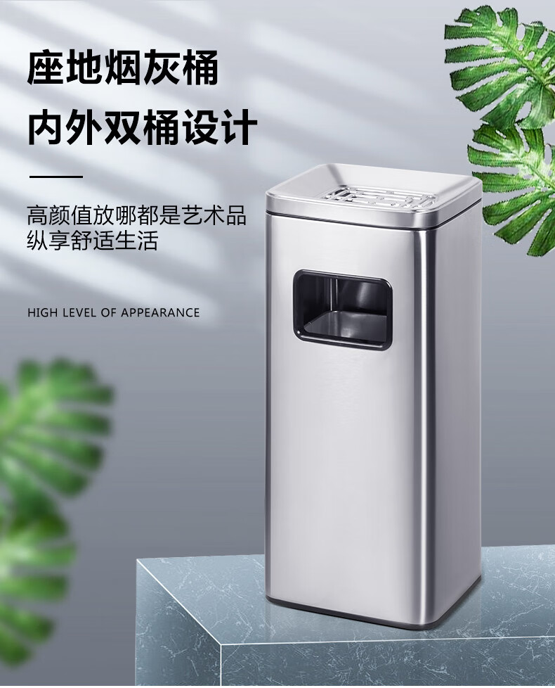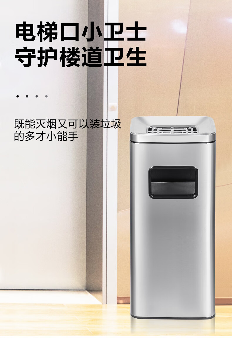 Lingxiang stainless steel ashtray hotel lobby trash can vertical hotel with inner bucket shopping mall bucket elevator entrance trash can suction bucket ash column ash extinguisher bucket single bucket rectangular