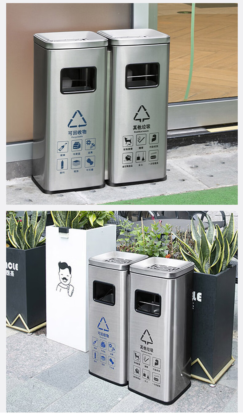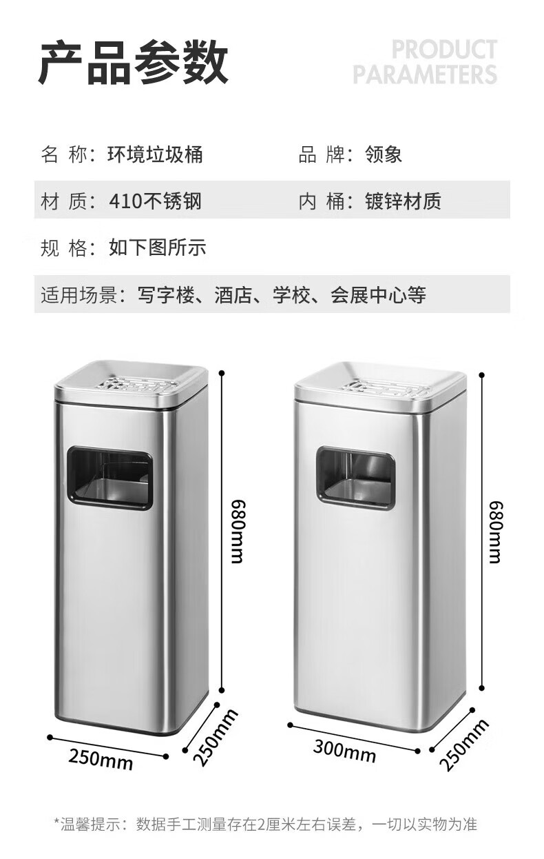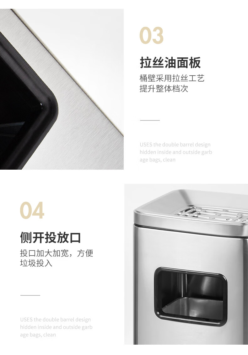 Lingxiang stainless steel ashtray hotel lobby trash can vertical hotel with inner bucket shopping mall bucket elevator entrance trash can suction bucket ash column ash extinguisher bucket single bucket rectangular