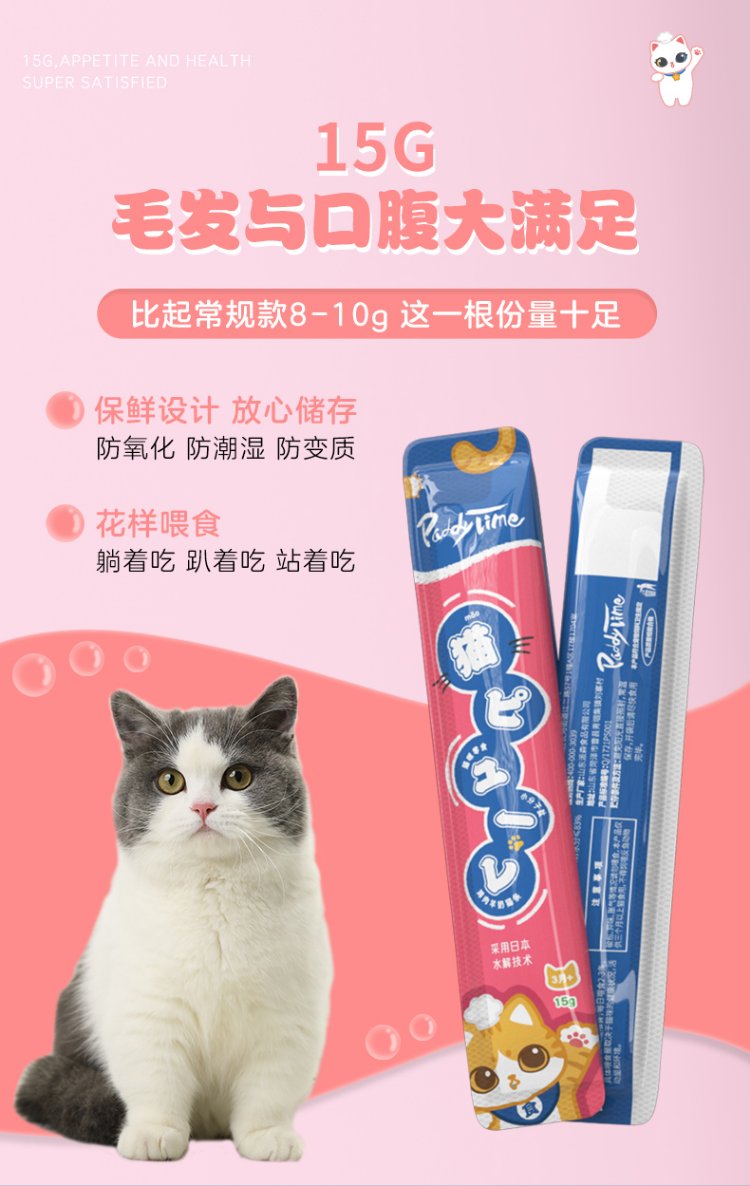 Paddy Time cat snacks mixed flavor 15g*60 pieces, pet nutrition, wet food snacks for young cats, hydrating hair and cheeks