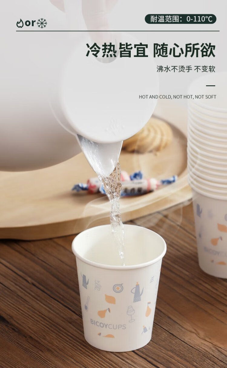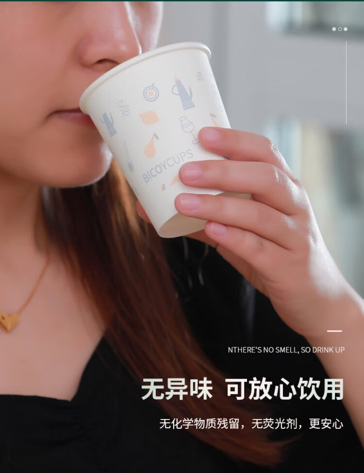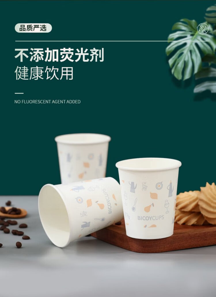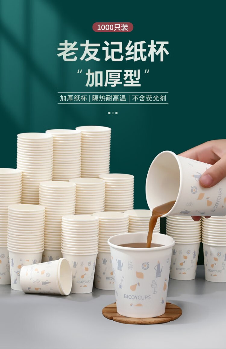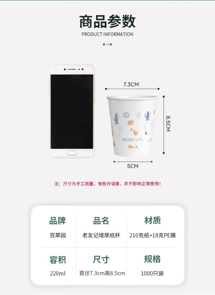 Baicaoyuan Paper Cups Disposable Cups Thickened Paper Cups 1000 Pack Full Box Business Hospitality Tea Cup 220ml Friends