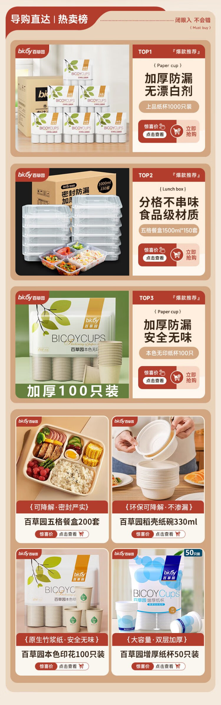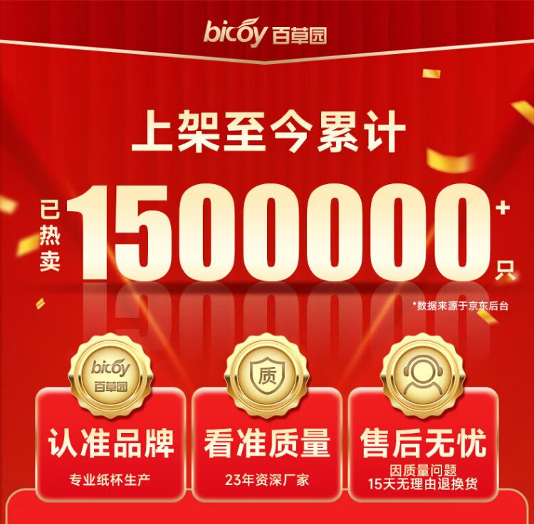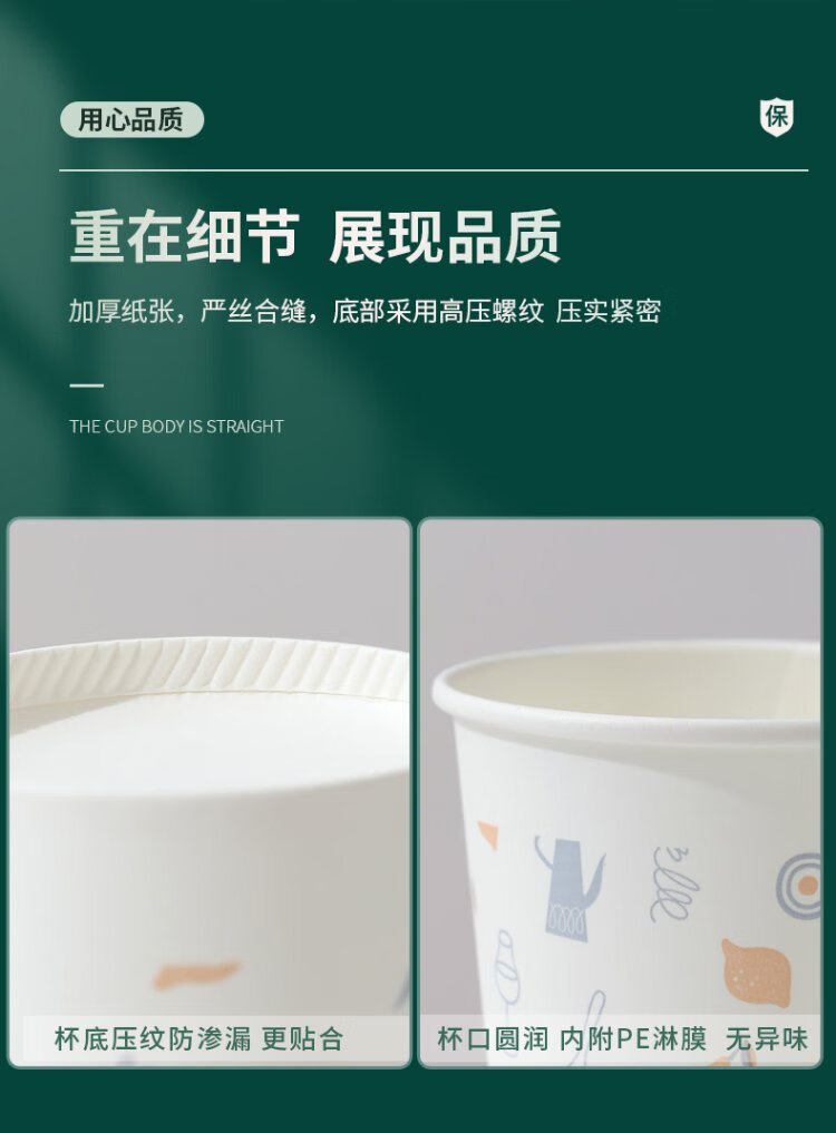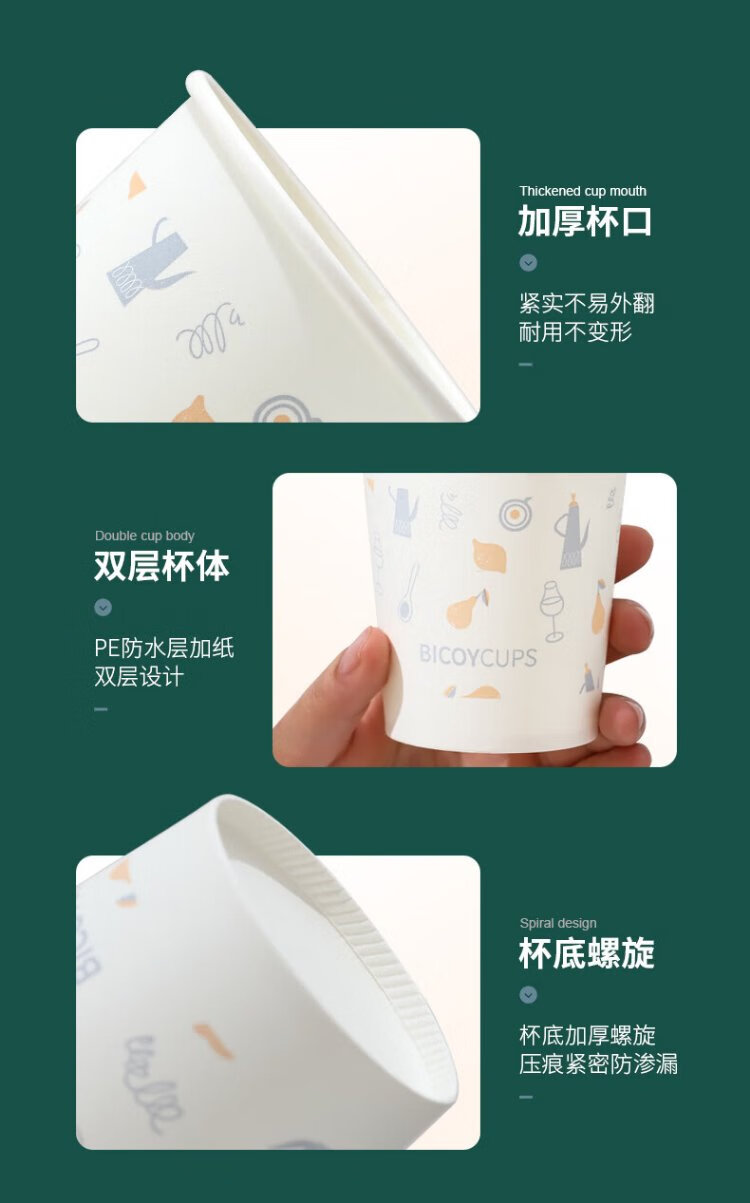 Baicaoyuan Paper Cups Disposable Cups Thickened Paper Cups 1000 Pack Full Box Business Hospitality Tea Cup 220ml Friends