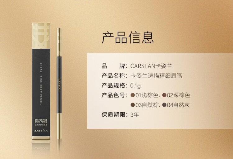 Carslan Quick Draw Fine Eyebrow Pencil Waterproof and Sweatproof Fine Refill Comes with Eyebrow Brush 04# Natural Gray 0.1g New Year's Gift for Women