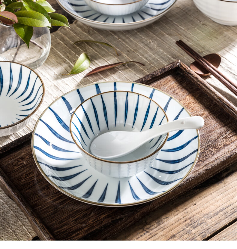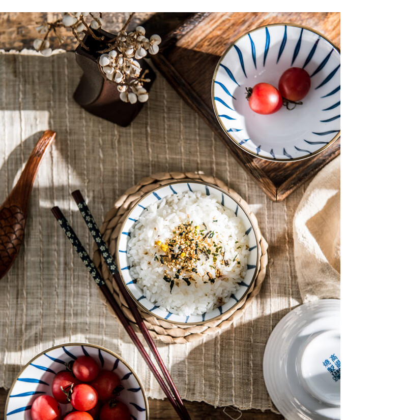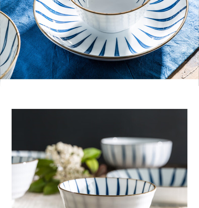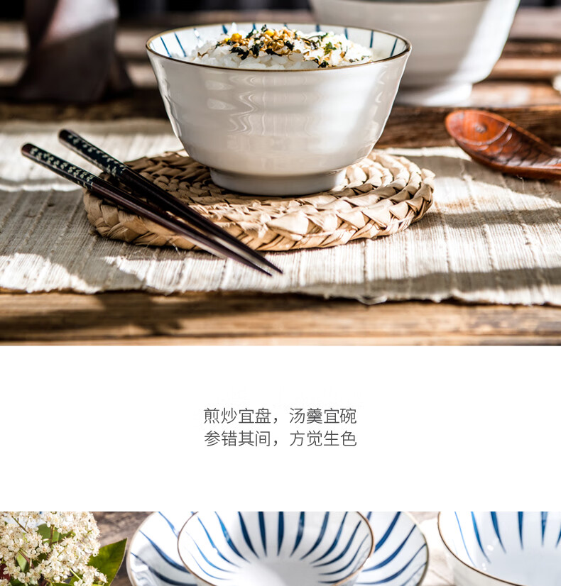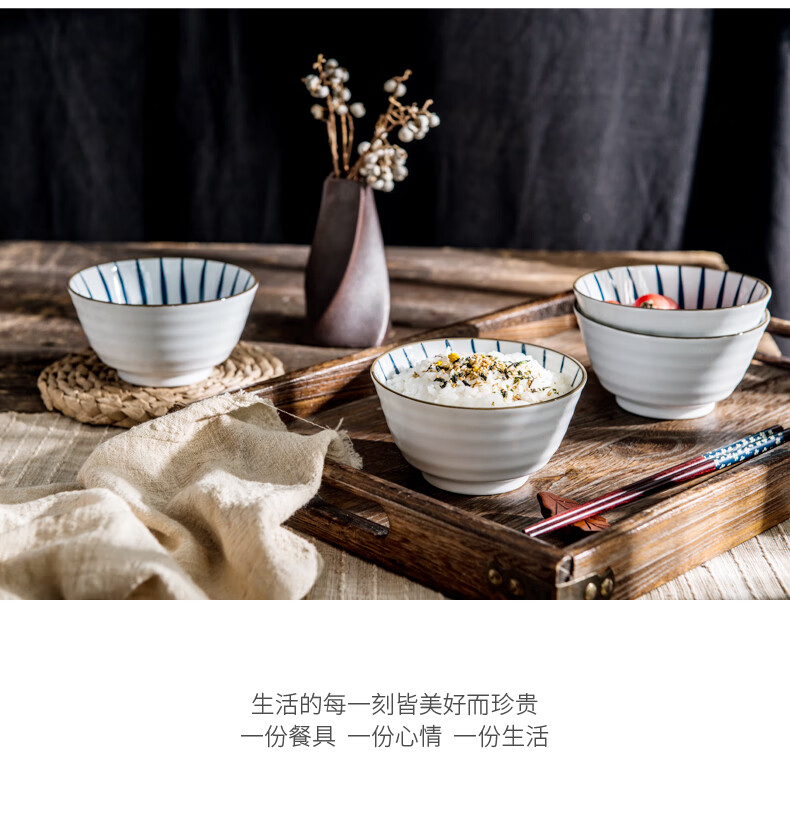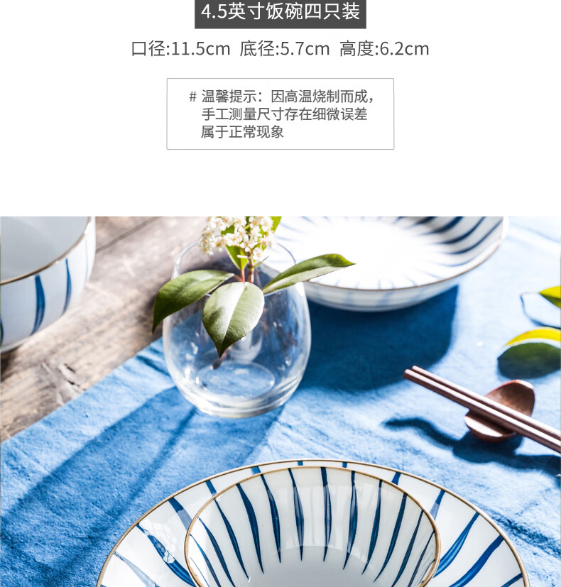 Yijia (IJARL) ceramic rice bowl with tall legs, underglaze color rice small bowl, small soup bowl, household bowl, orchid grass 4.5-inch rice bowl, 4-pack