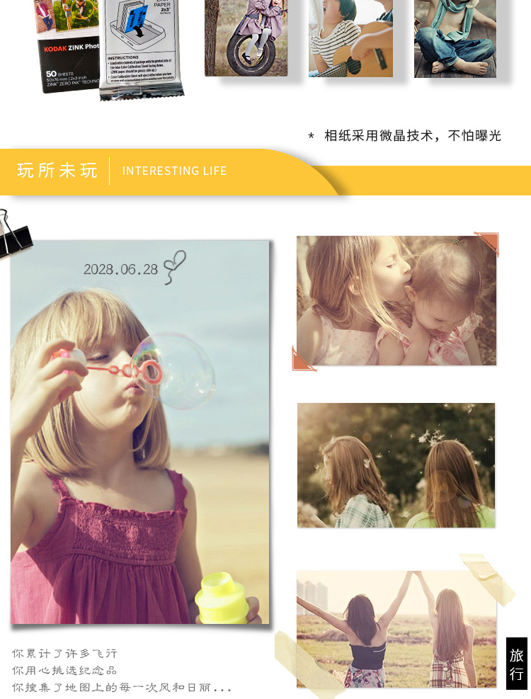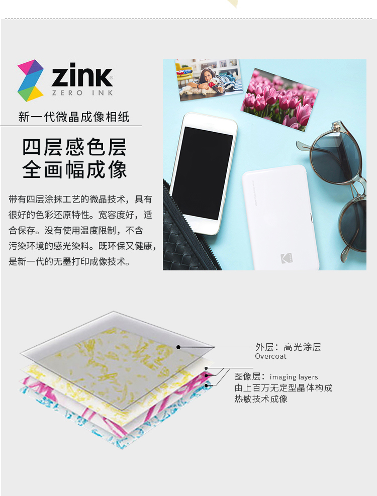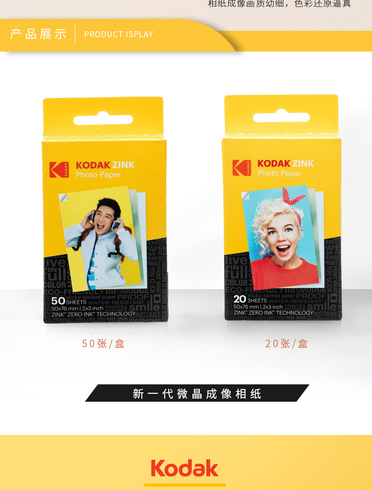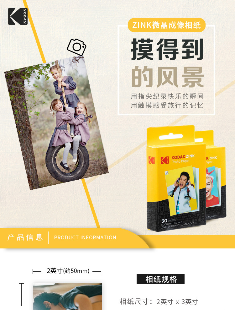 KODAKZink 2X3 inch photo paper Kodak PRINTOMATIC, Smile series instant photo paper instant inkless photo paper 50 sheets
