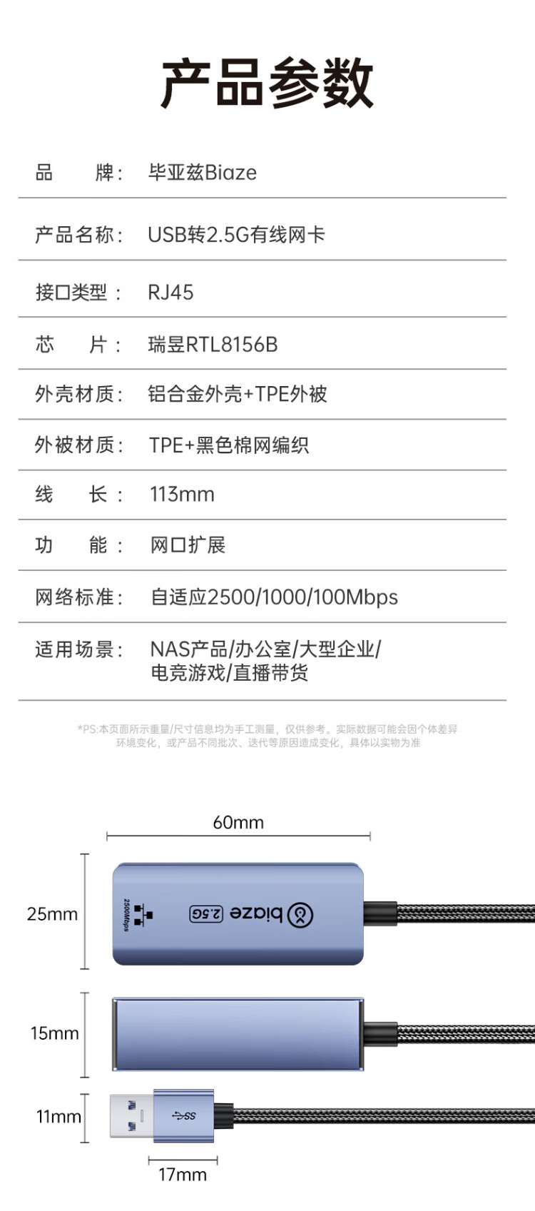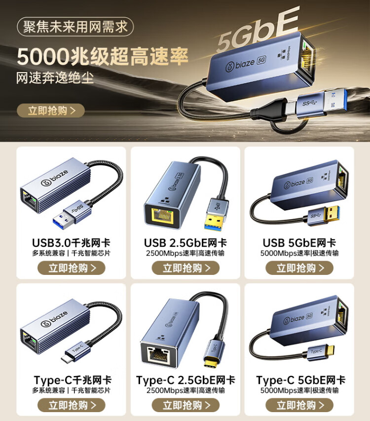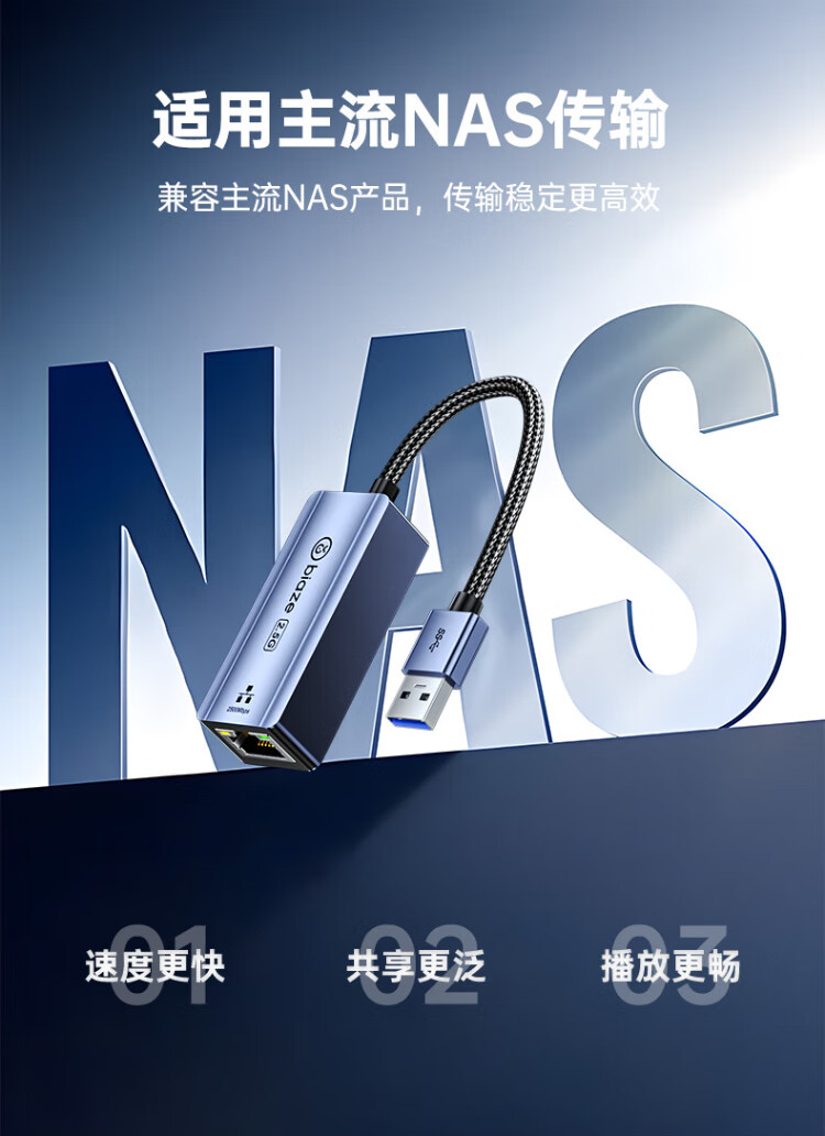 Biaz USB2.5G network card Gigabit wired network Apple Mac laptop USB to RJ45 network port converter network cable adapter 2.5G external network card driver-free