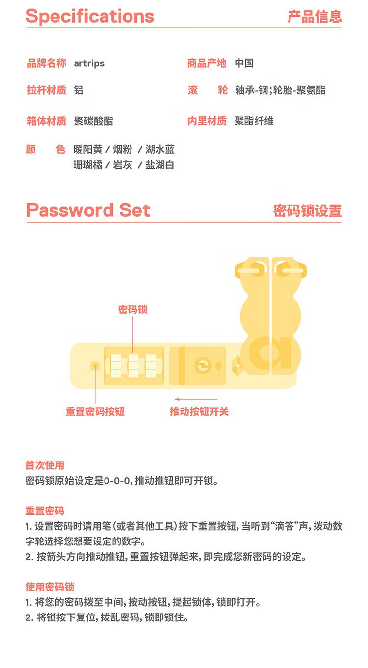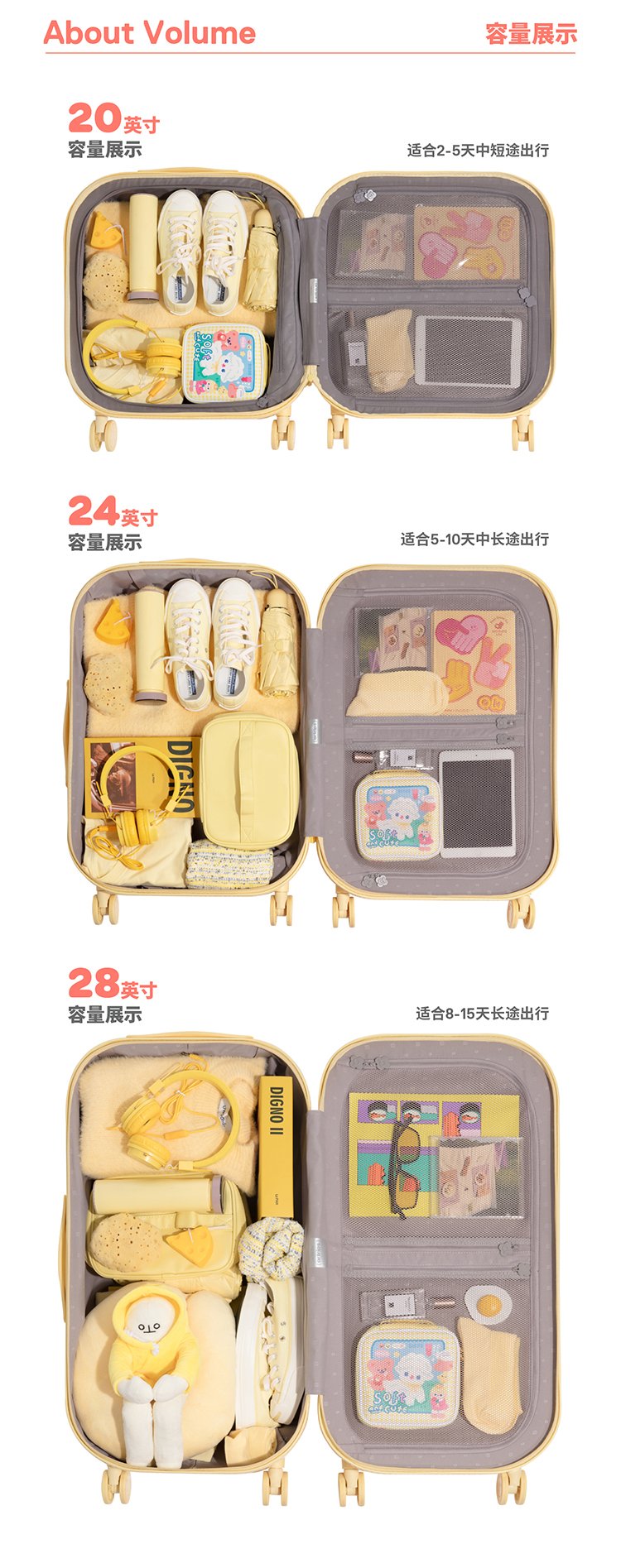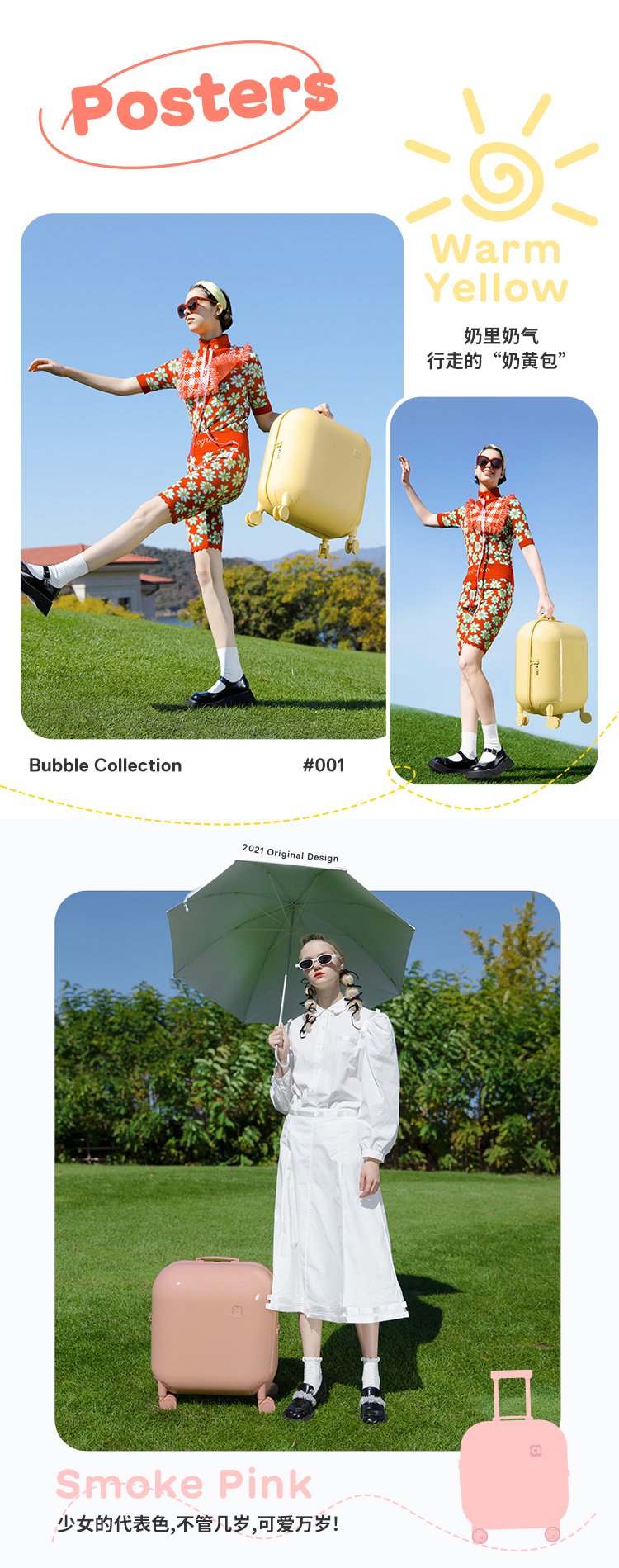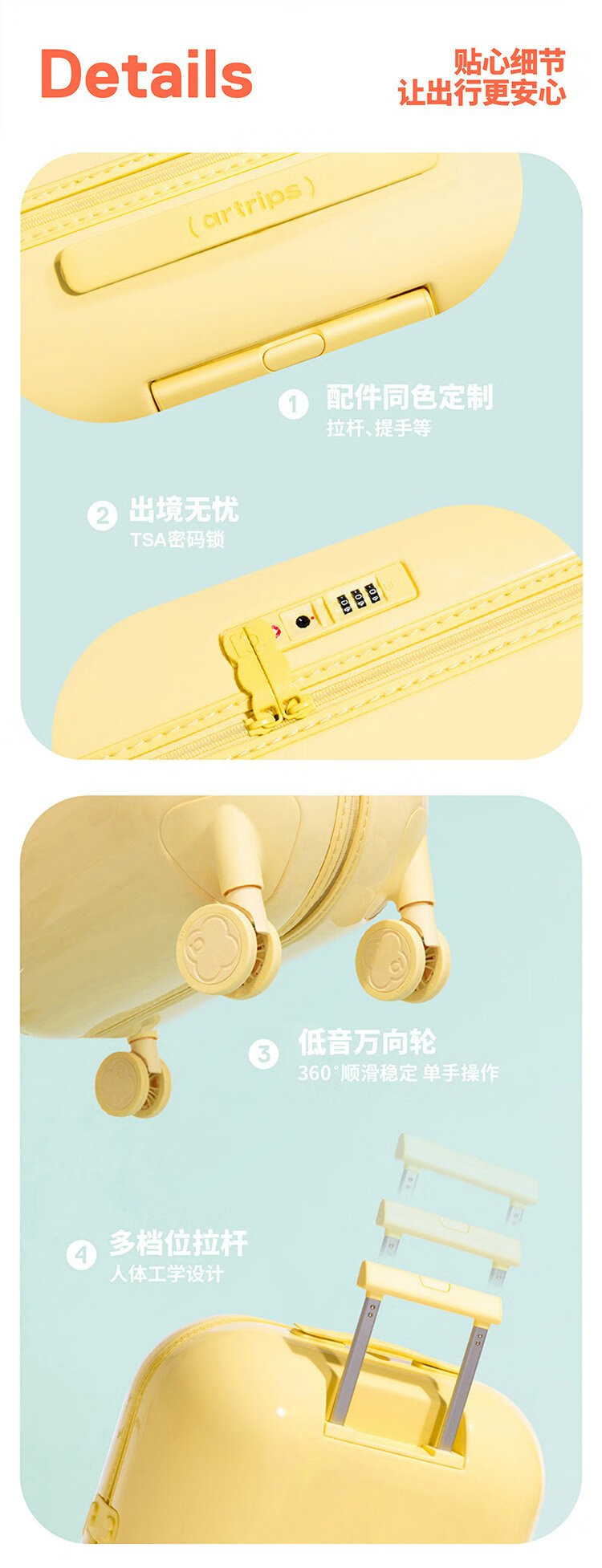 Artrips suitcase bubble trolley case for women 20-inch boarding high-value bass universal wheel suitcase Nuanyang Yellow