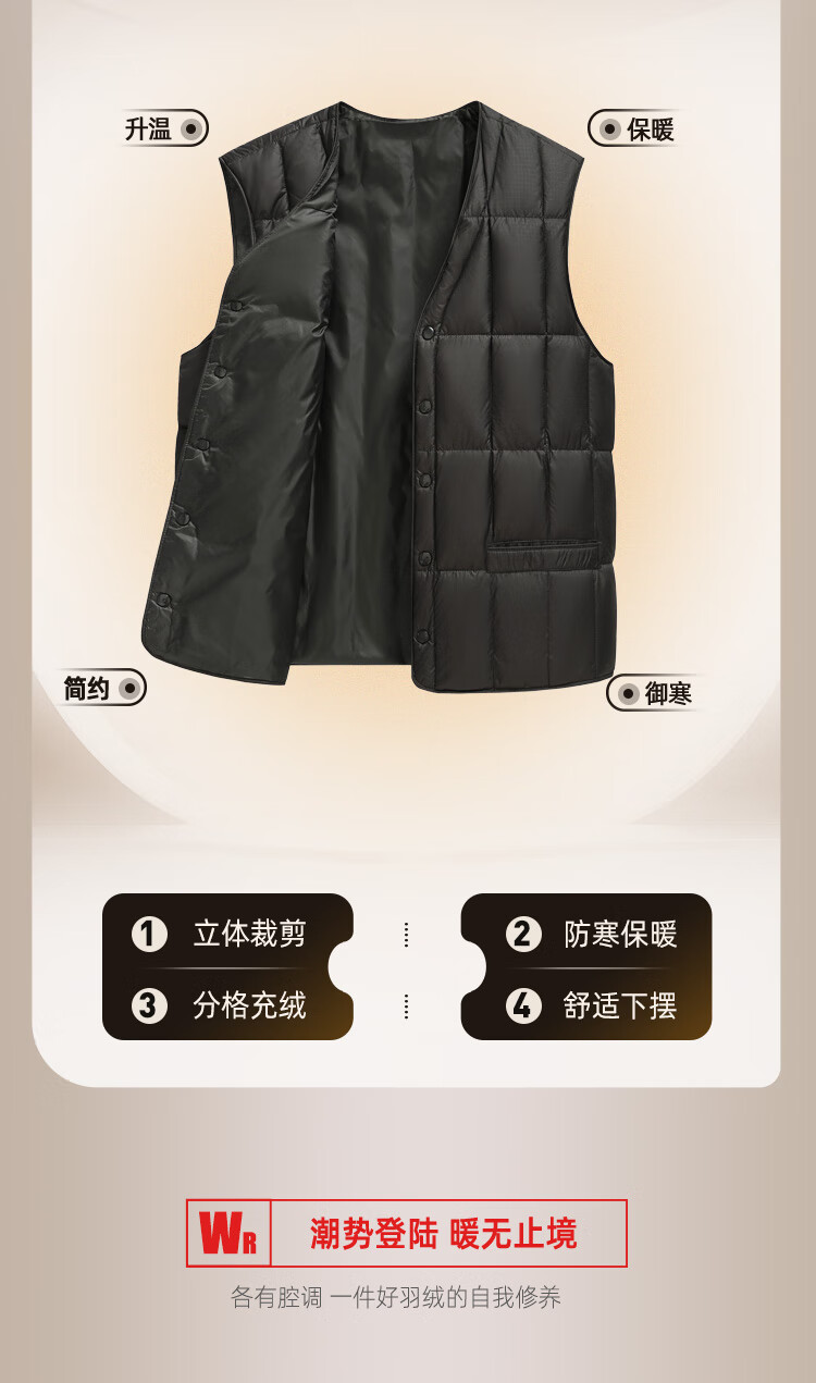 Flying in the Snow Autumn and Winter Men's Down Vest Warm Down Vest Jacket Casual Inner Wear Down Liner for Middle-aged and Elderly People