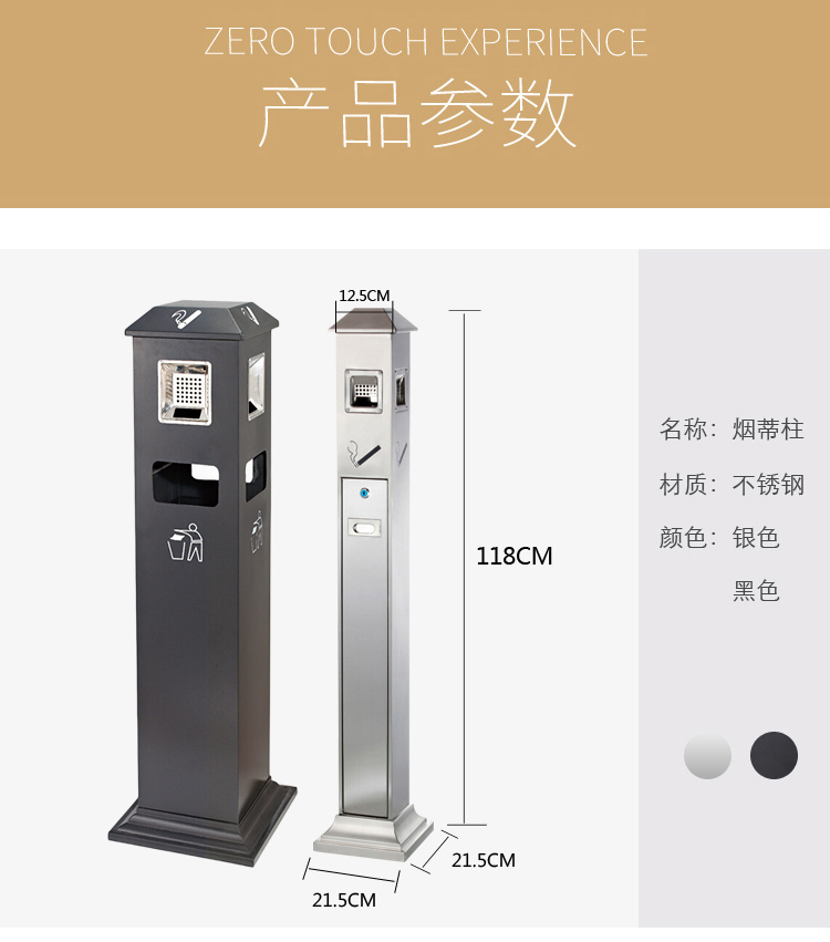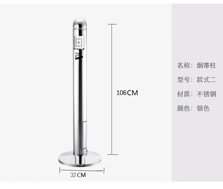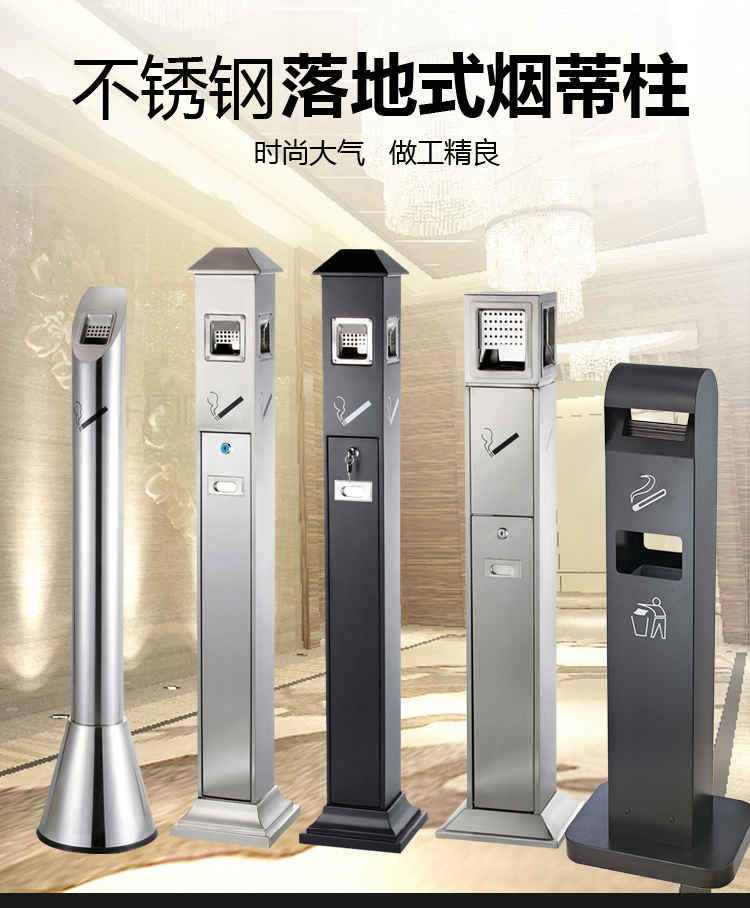 Supercloud shopping mall vertical ash column stainless steel cigarette butt column smoke extinguishing bucket outdoor smoking area ashtray outdoor floor-standing smoke extinguishing trash can custom GPX-111A