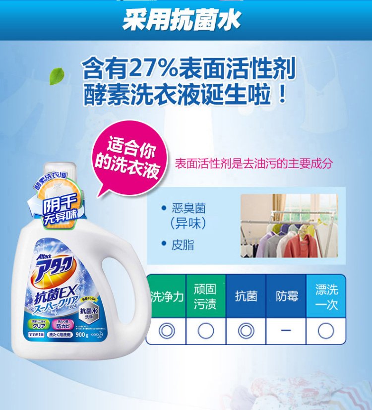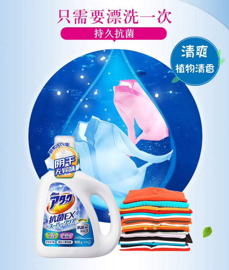 Kao KAO Antibacterial EX Laundry Detergent 720g+1.8kg, sterilizing, removing mites, antibacterial, drying in the shade, no odor, random replacement