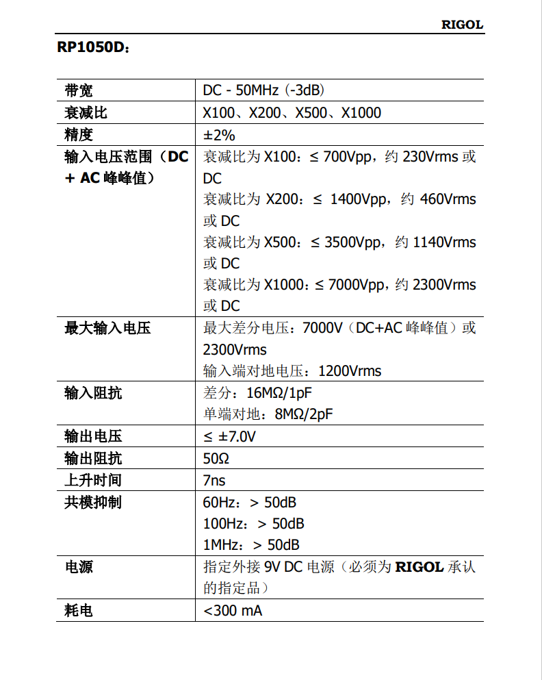 RIGOL (RIGOL) digital oscilloscope universal high-voltage differential probe RP1025D 25MHz