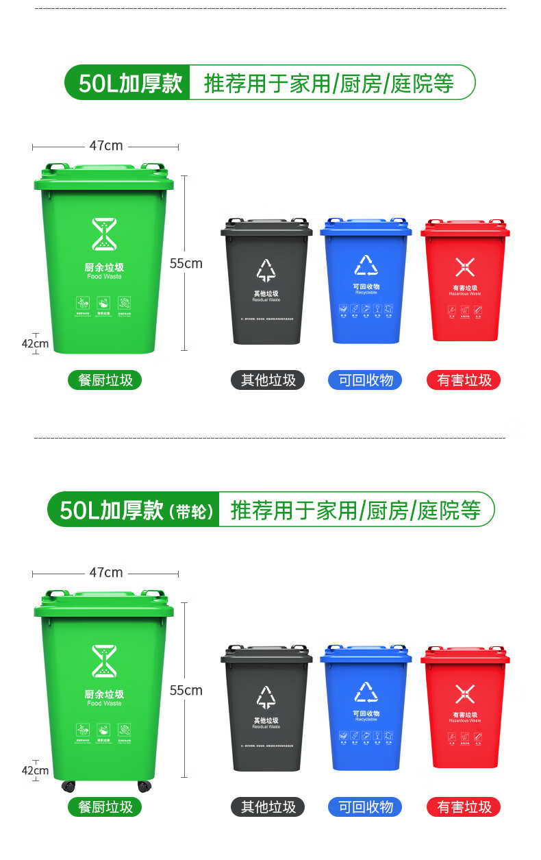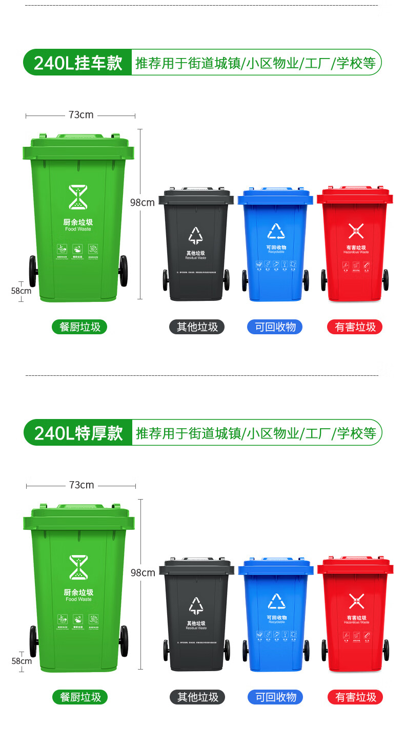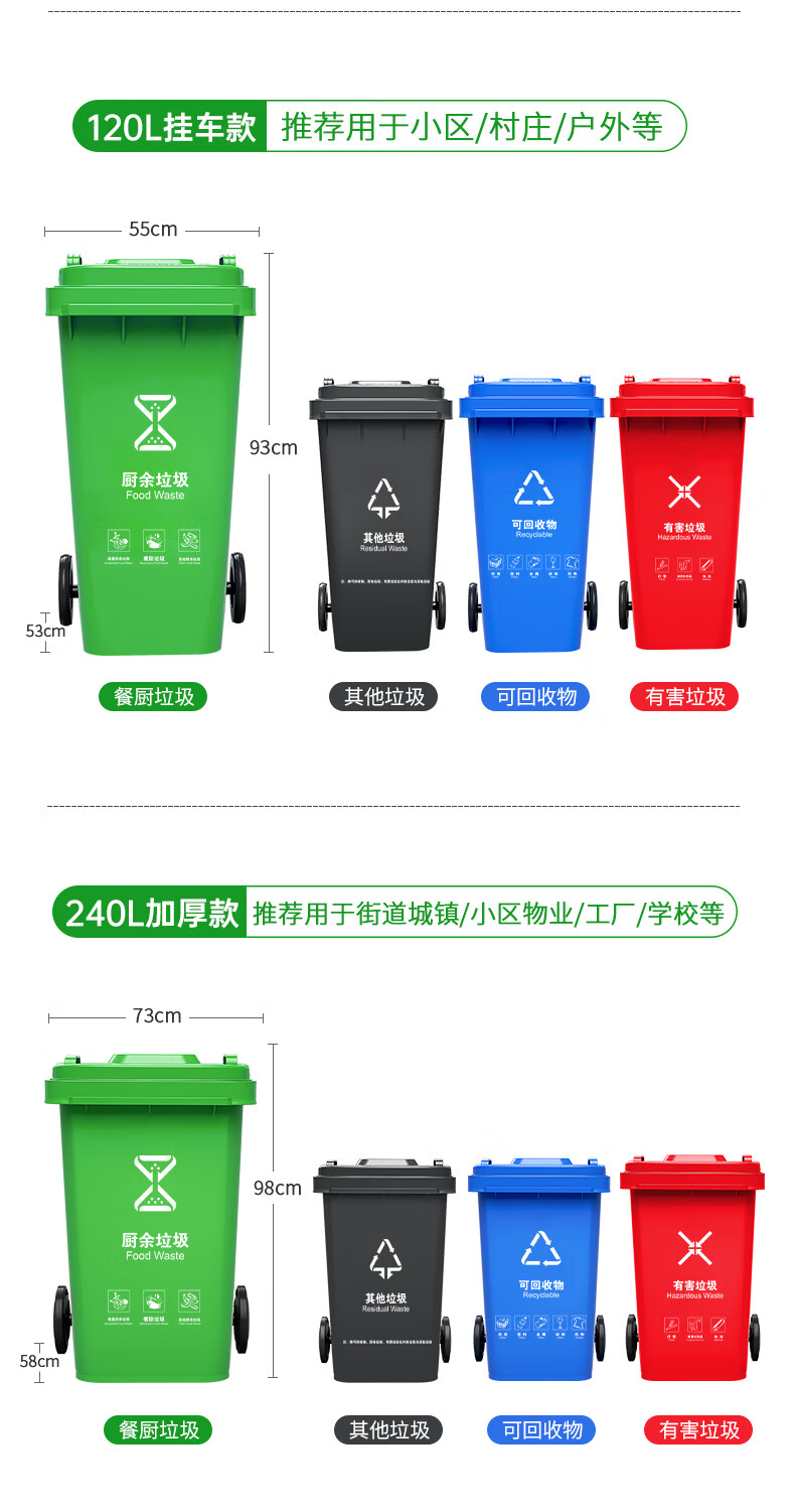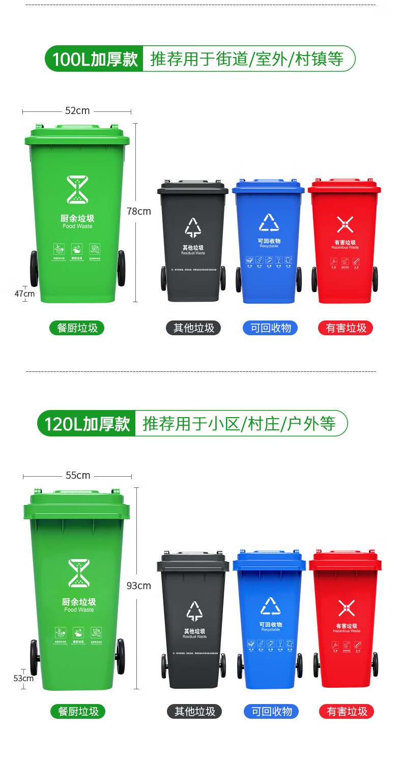 Supercloud 120L outdoor large trash can large with lid commercial outdoor sanitation hotel kitchen waste classification thickened large capacity plastic outdoor property other garbage black gray