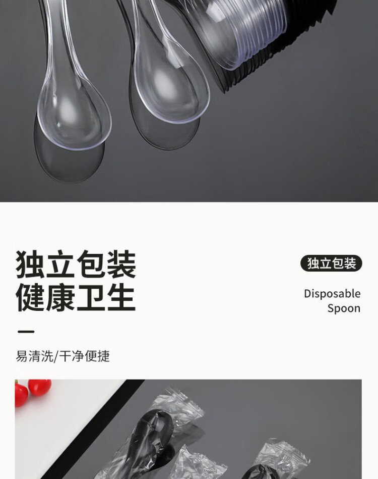 Denbigh disposable spoon individually packaged fruit scoop watermelon soup rice plastic small ice cream yogurt meal spoon thickened takeaway
