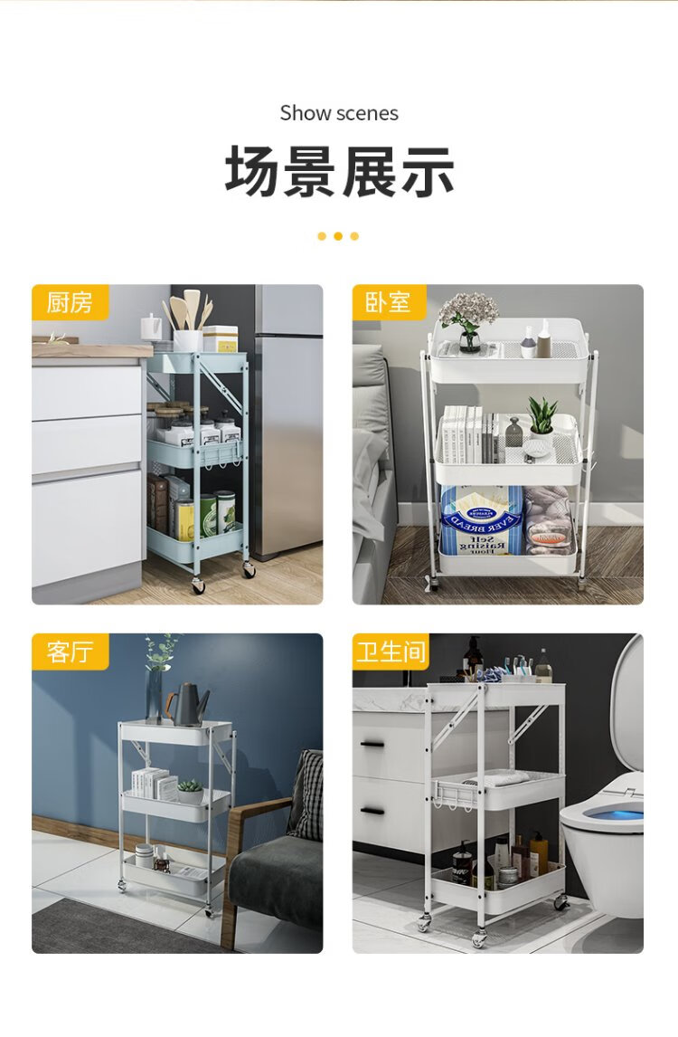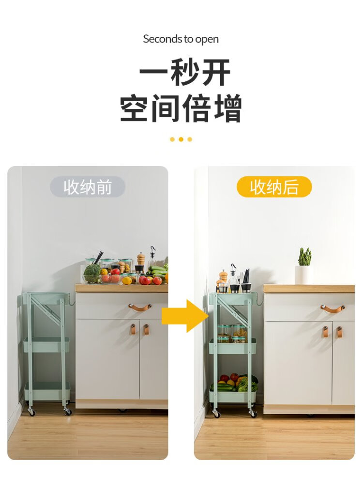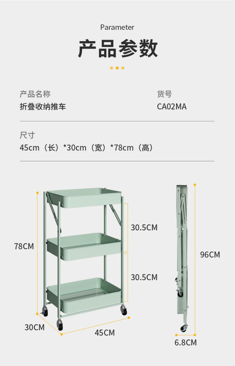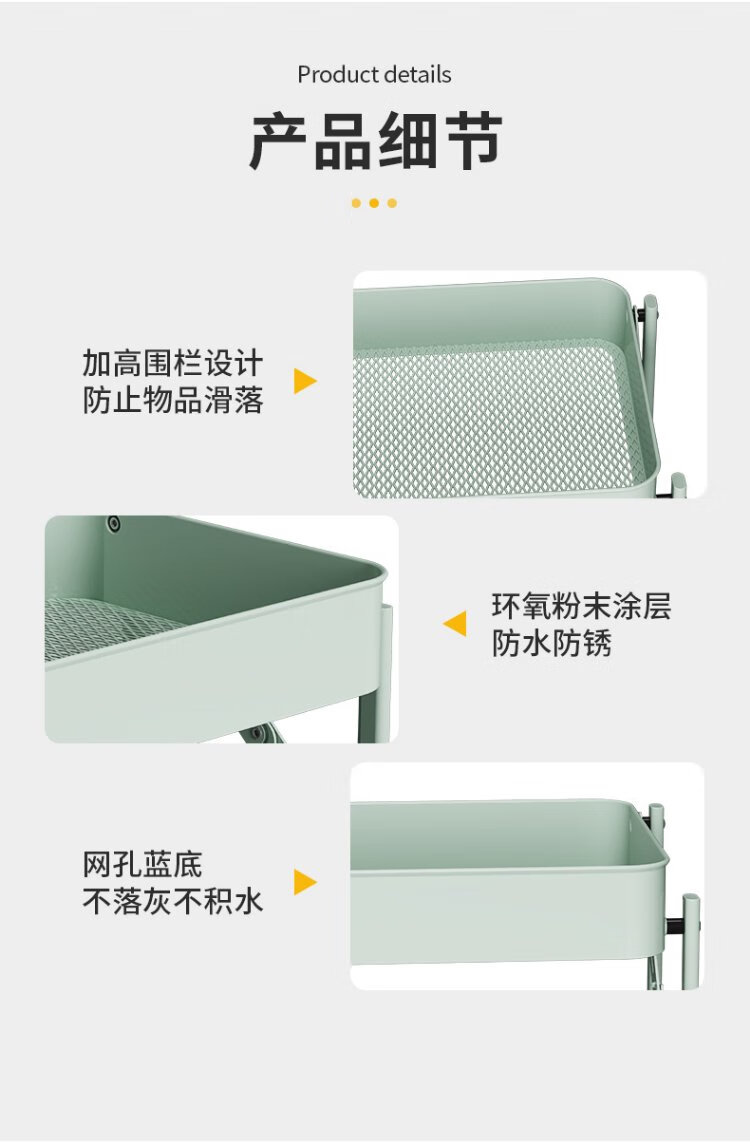 Chuidahuang three-layer storage rack, installation-free folding storage cart, multi-functional shelf storage rack, floor-standing rack, light green