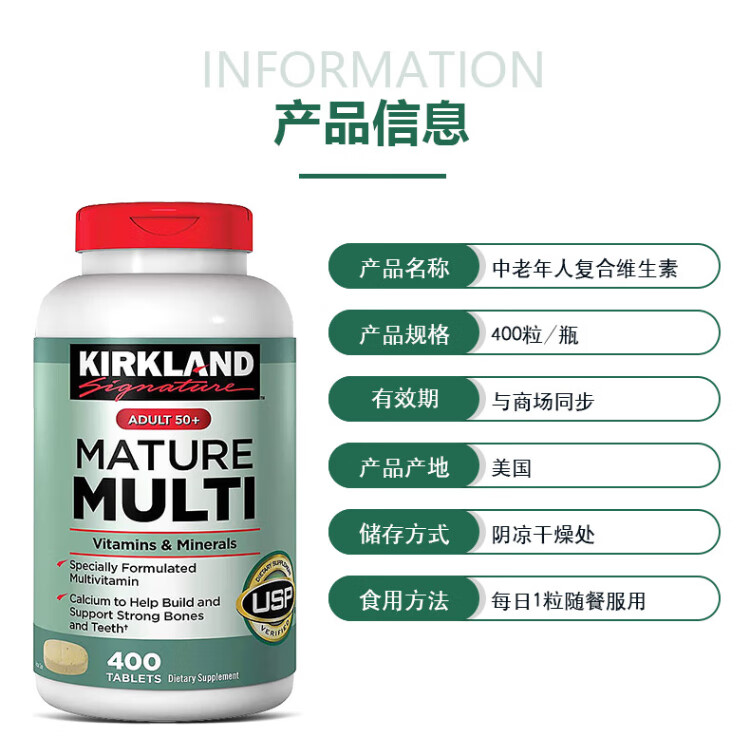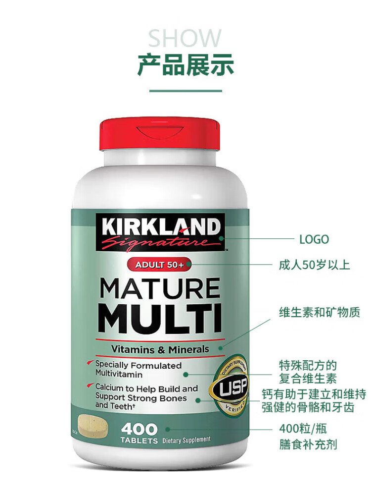 Kirkland Kirkland multivitamin tablets for middle-aged and elderly people over 50 years old with multiple nutrients imported from the United States