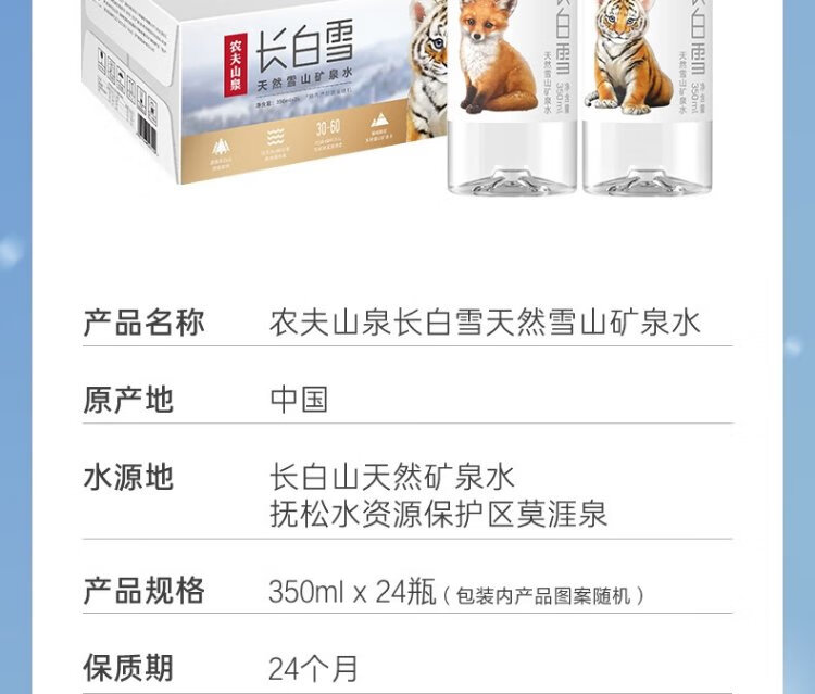Nongfu Spring Changbai Mountain Natural Mineral Water Drinking Water Changbai Snow 350ml*24 Bottles Full Box