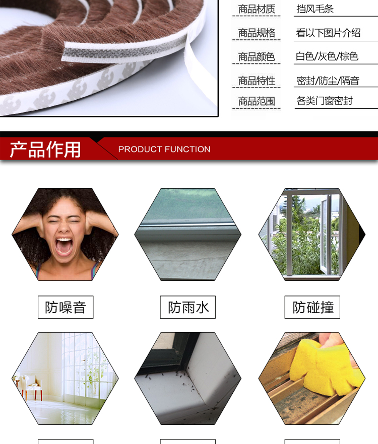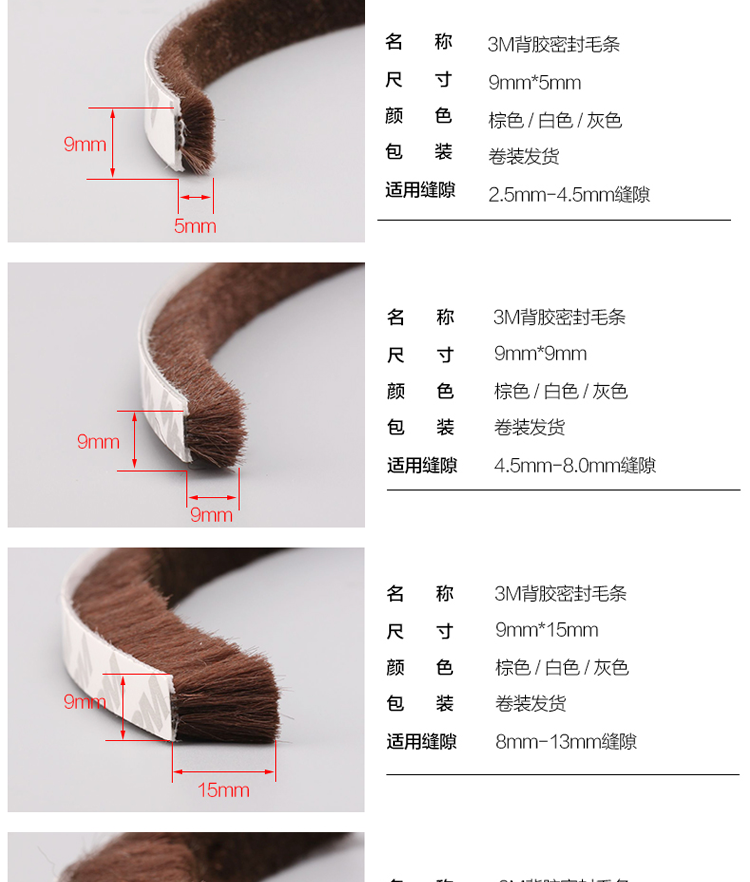Bingyu BYlj-40 door and window sealing strips self-adhesive sealing strips dustproof and soundproofing sealing strips adhesive backing 9*9mm gray 10 meters