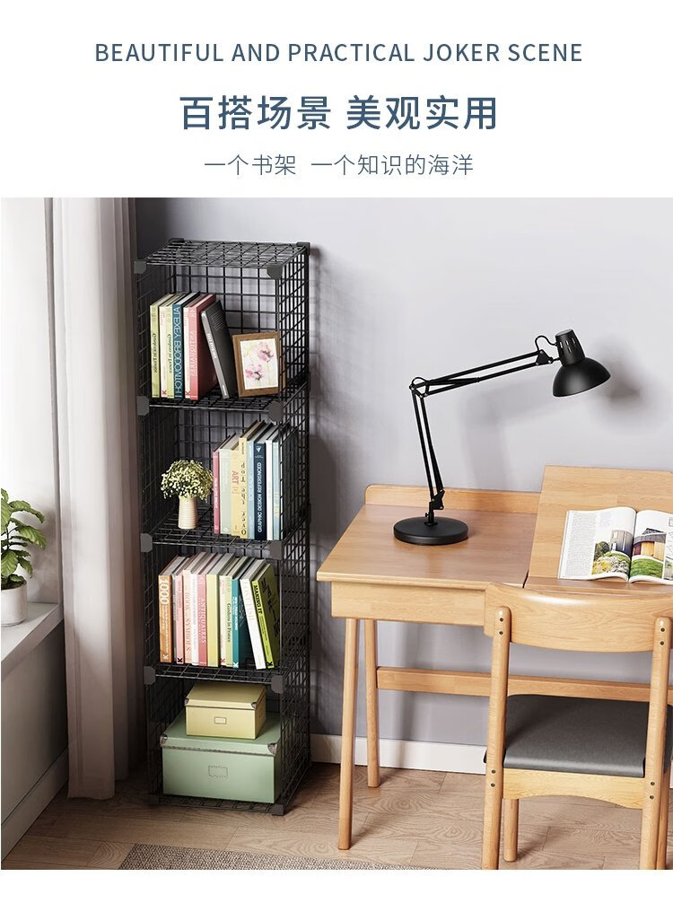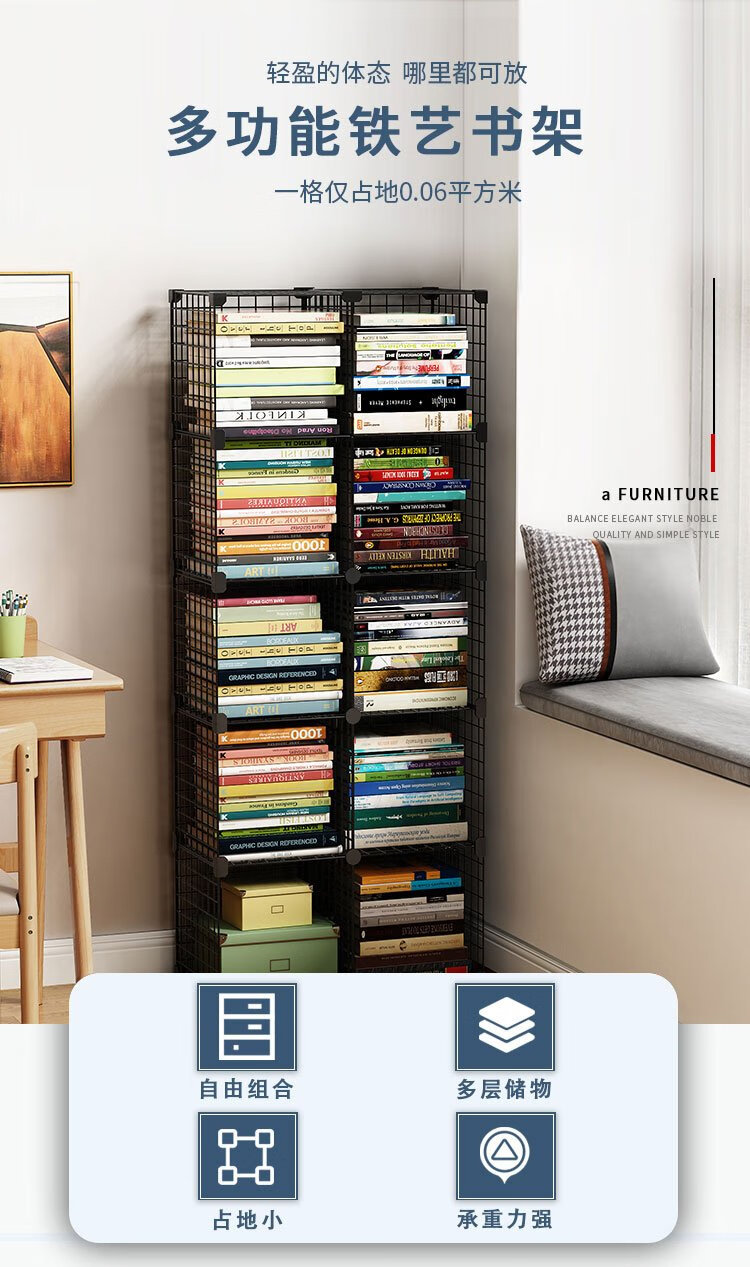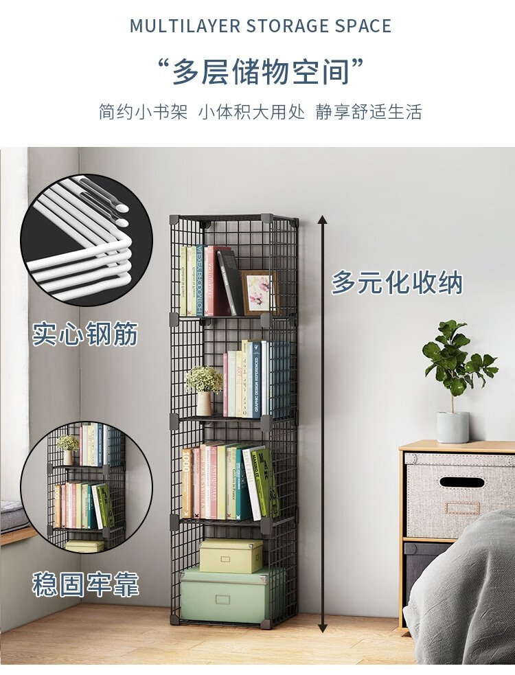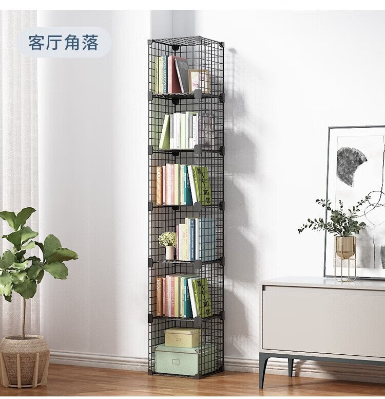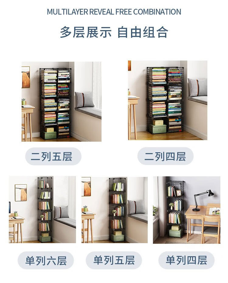 Anya simple bookshelf floor iron art narrow cabinet living room storage rack free combination large capacity bookcase 2 columns 5 layers