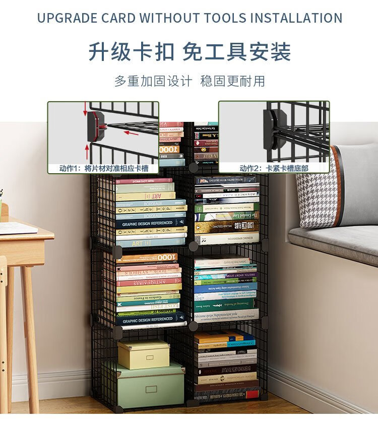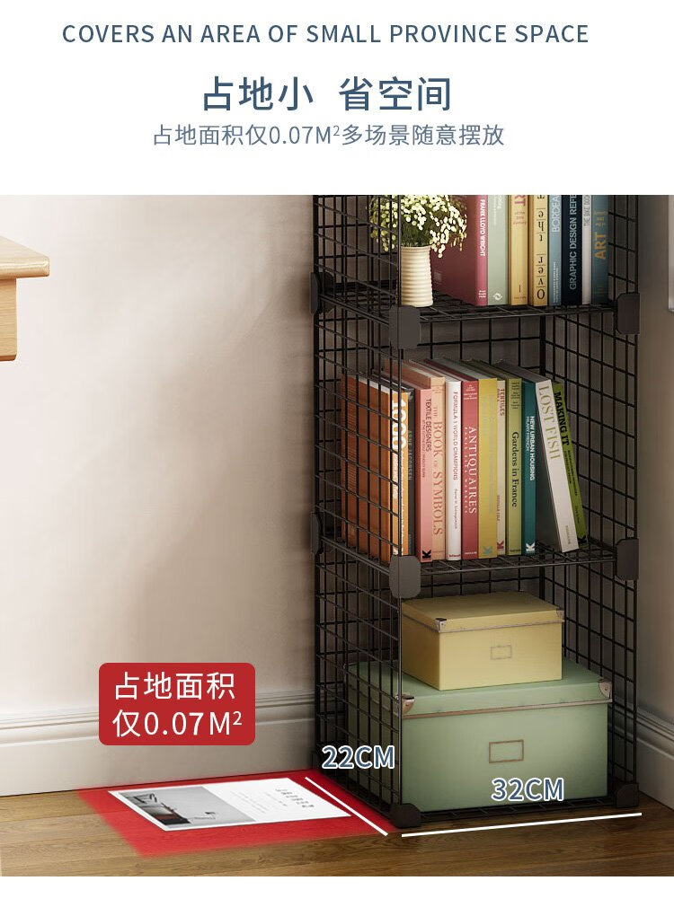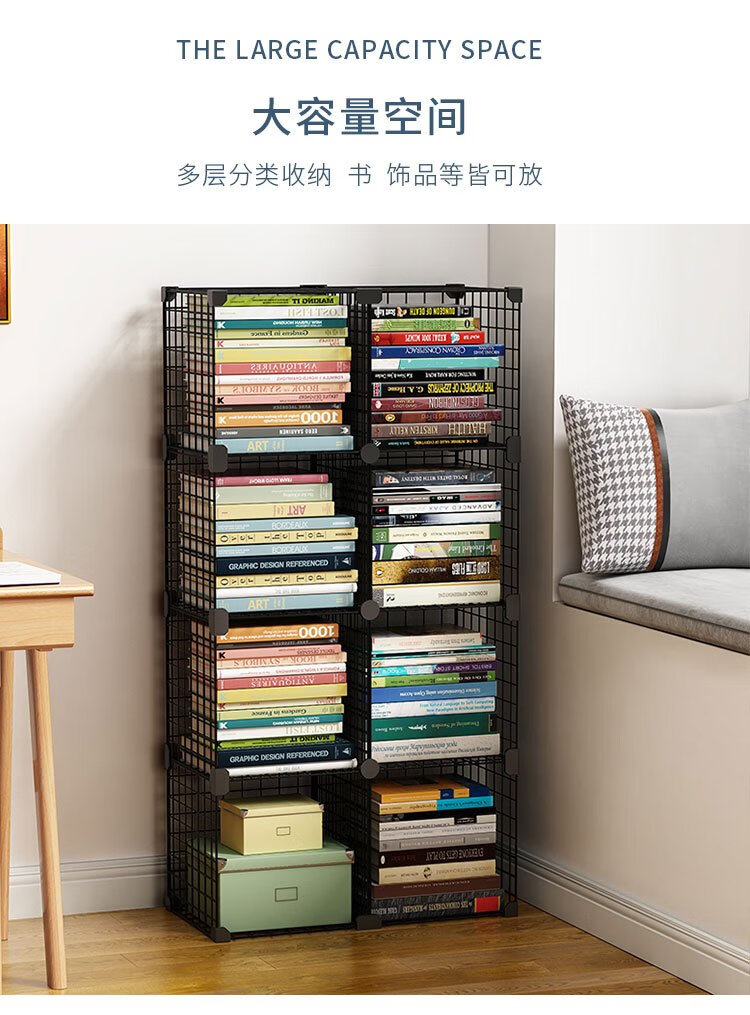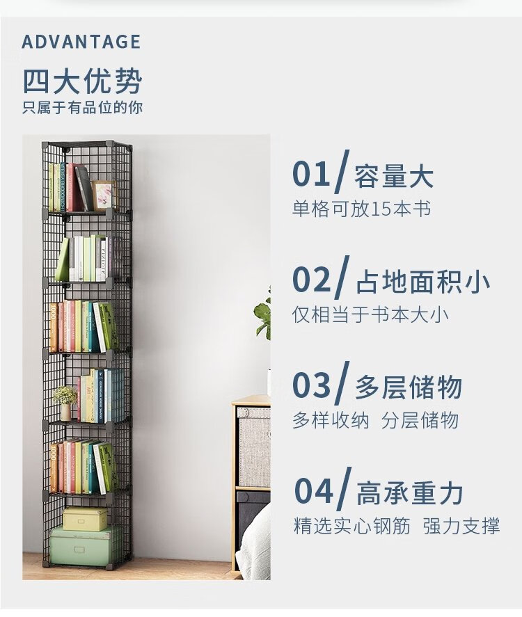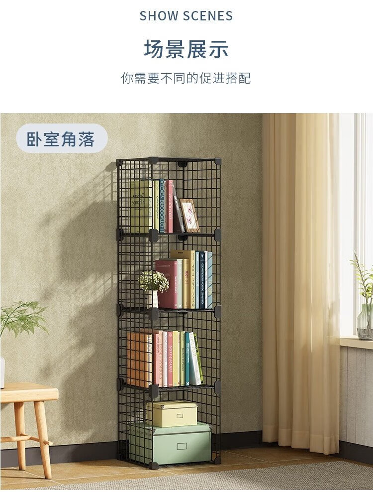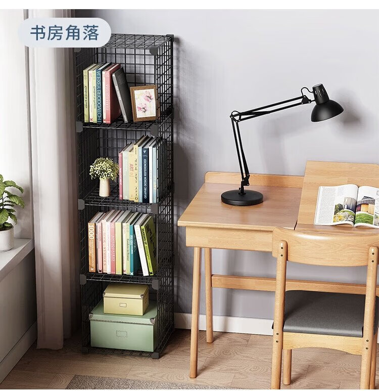 Anya simple bookshelf floor iron art narrow cabinet living room storage rack free combination large capacity bookcase 2 columns 5 layers