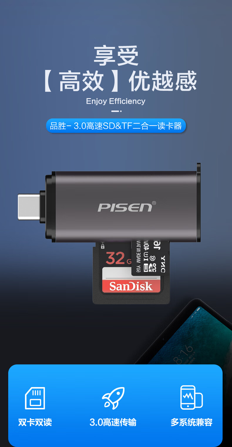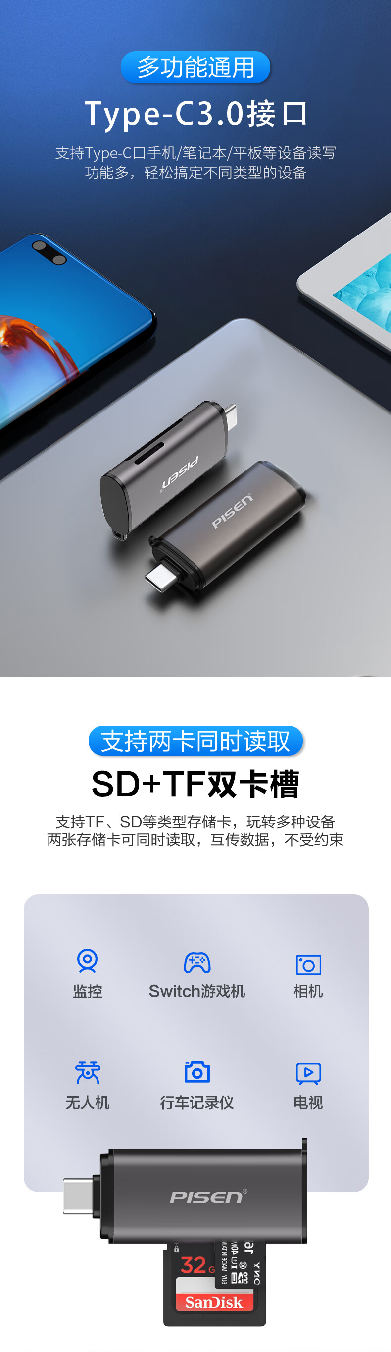 Pinsheng Type-C card reader SD/TF multi-function two-in-one suitable for ipad/Apple 15/16 mobile phone OTG Android mobile phone camera drone monitoring recorder memory card