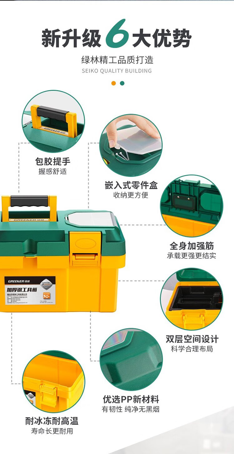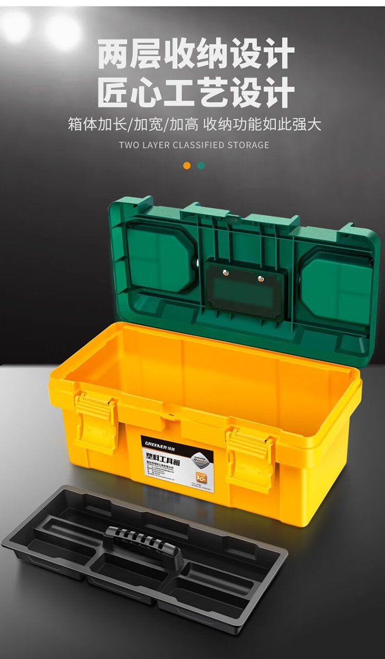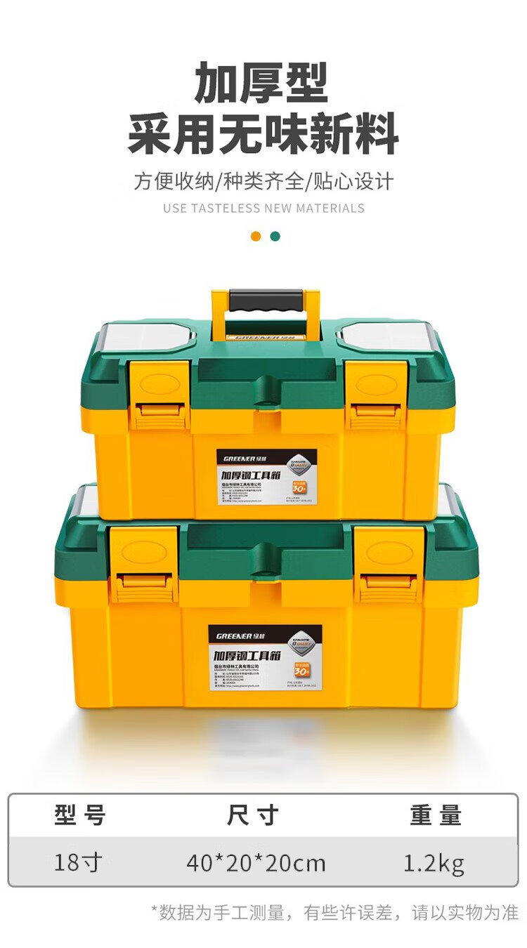 GREENER Toolbox 18-inch Storage Box Hardware Large Capacity Electrician Home Portable Car Multifunctional Maintenance Universal