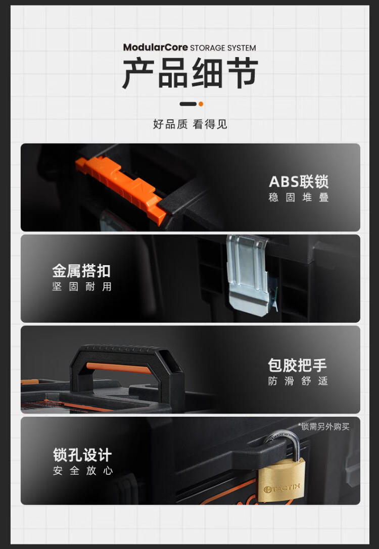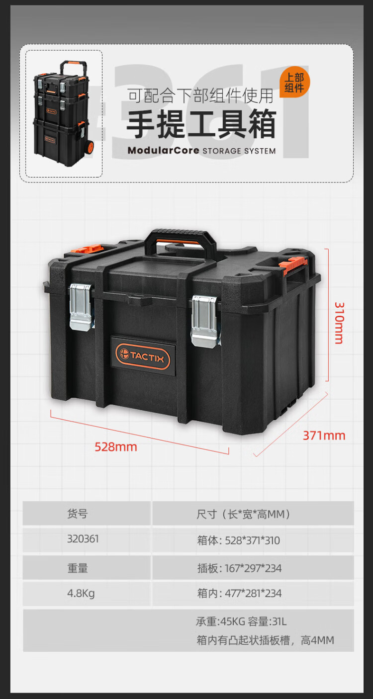 Tactix heavy-duty stacking toolbox accessories portable large-capacity storage box thickened industrial household 320361