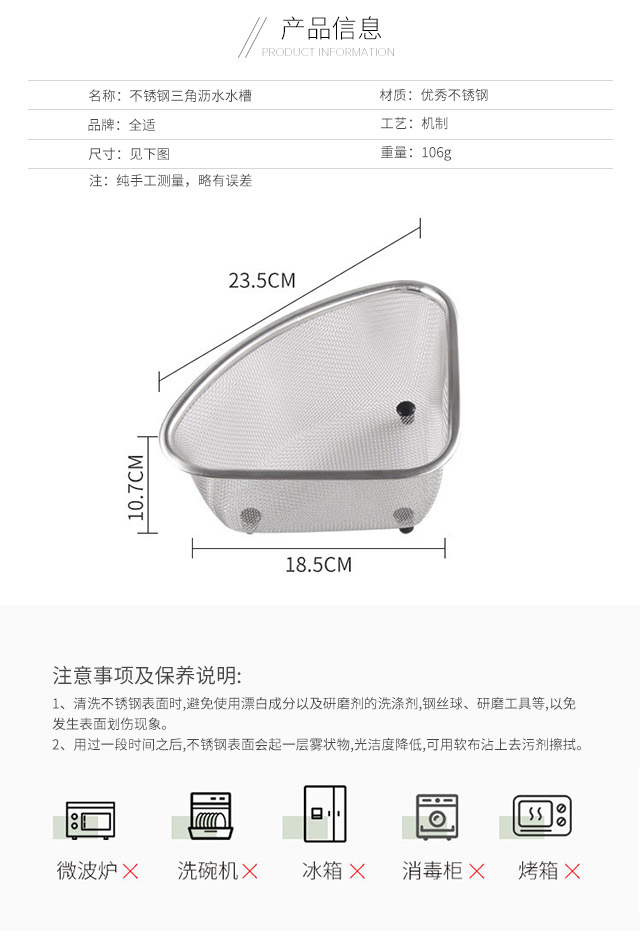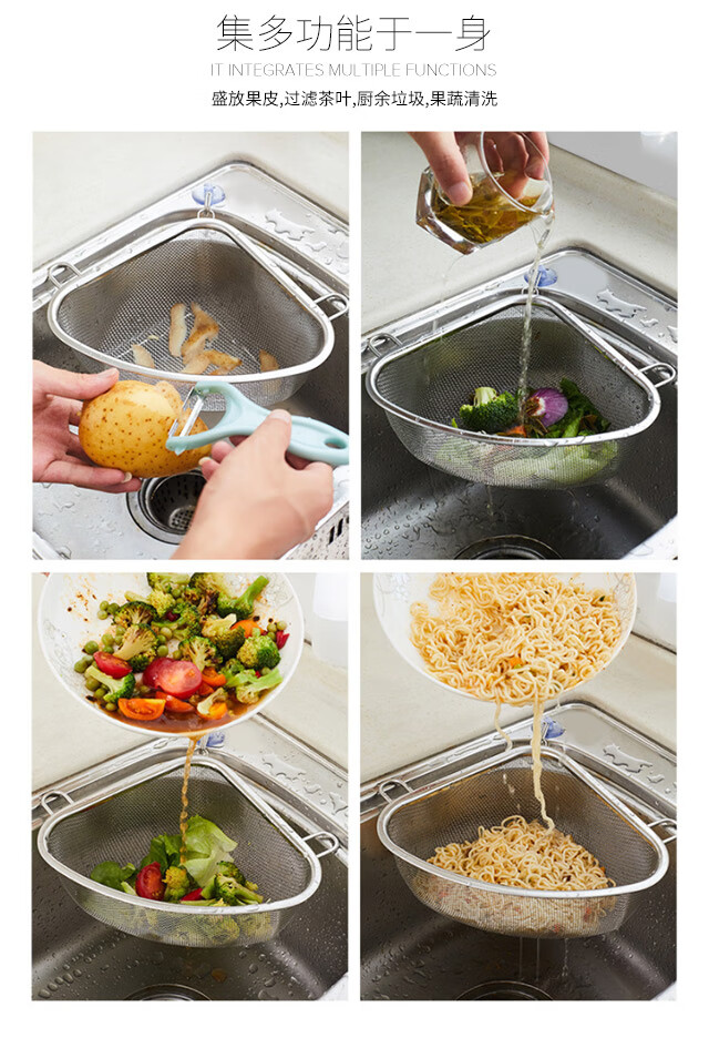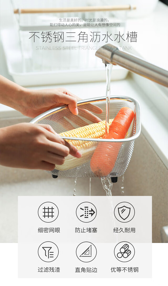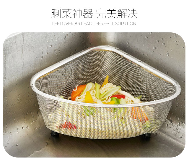 All-purpose stainless steel sink filter triangle drain net drain rack leftover artifact kitchen storage rack storage rag rack