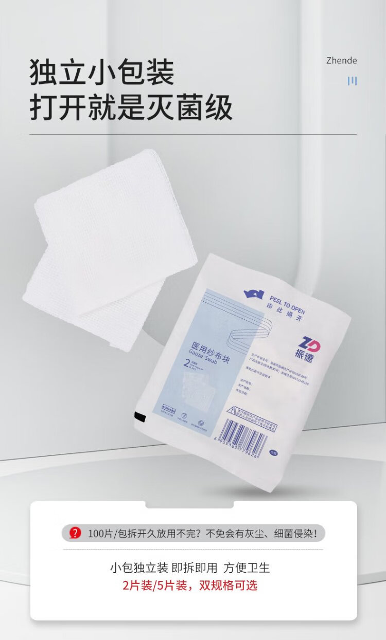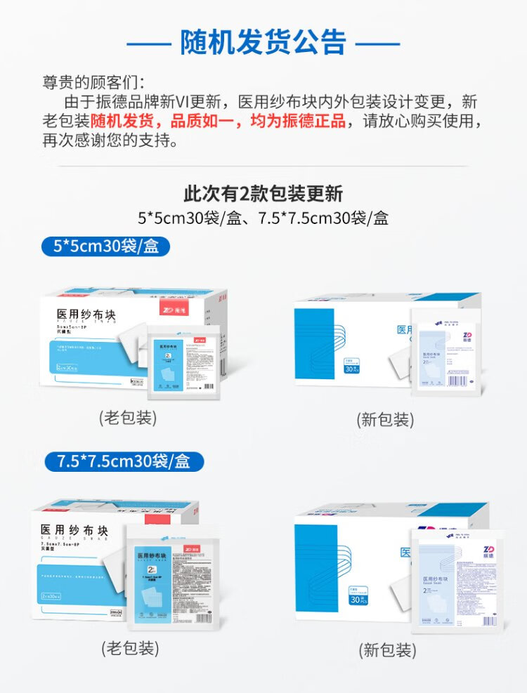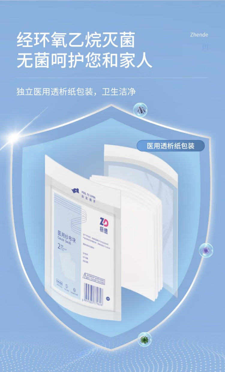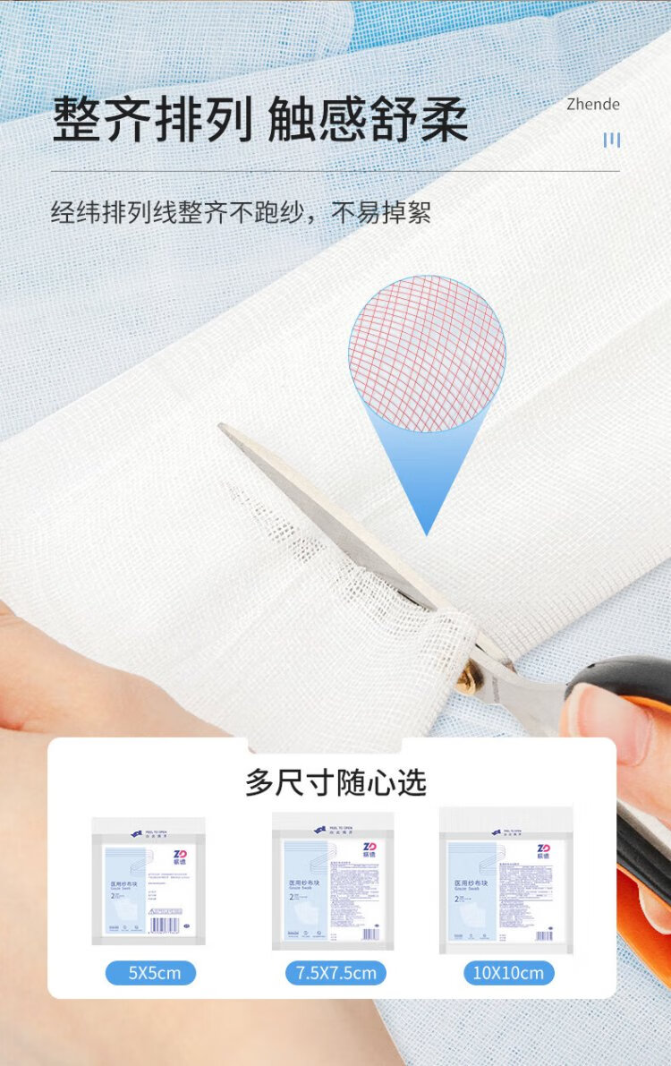 ZHENDE medical sterile gauze pieces gauze dressing 7.5*7.5cm 2 pieces/bag*30 bags disposable wound dressing