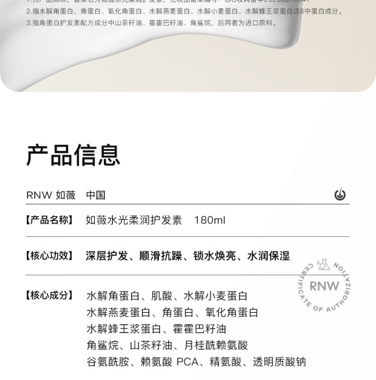 Ruwei (RNW) Softening Conditioner 180ml Sixfold Keratin Hydrating and Moisturizing Improves Dry, Frizzy, Fluffy and Permed Damaged Hair
