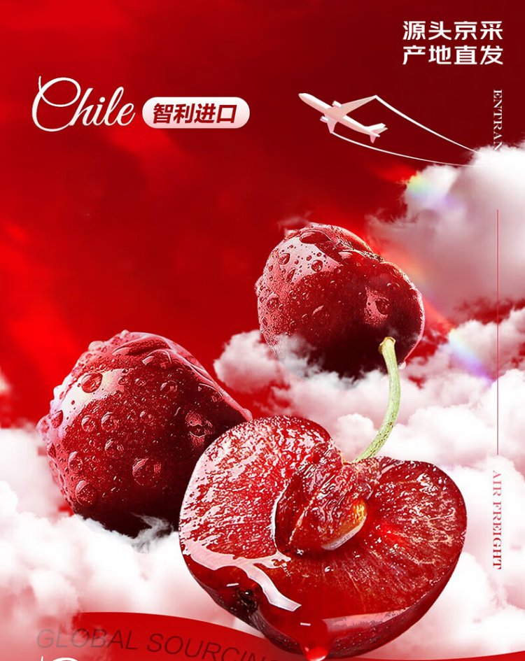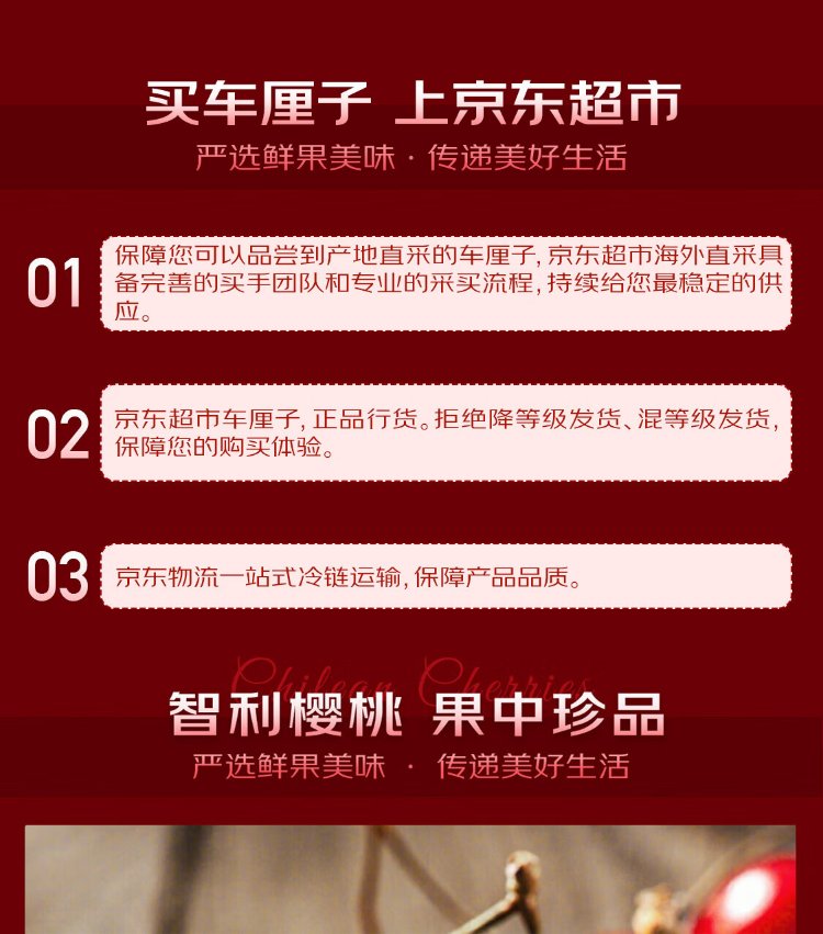 Jingxiansheng Chilean imported cherries XL grade 10 catties gift box fruit diameter about 24-26mm fruit gift box