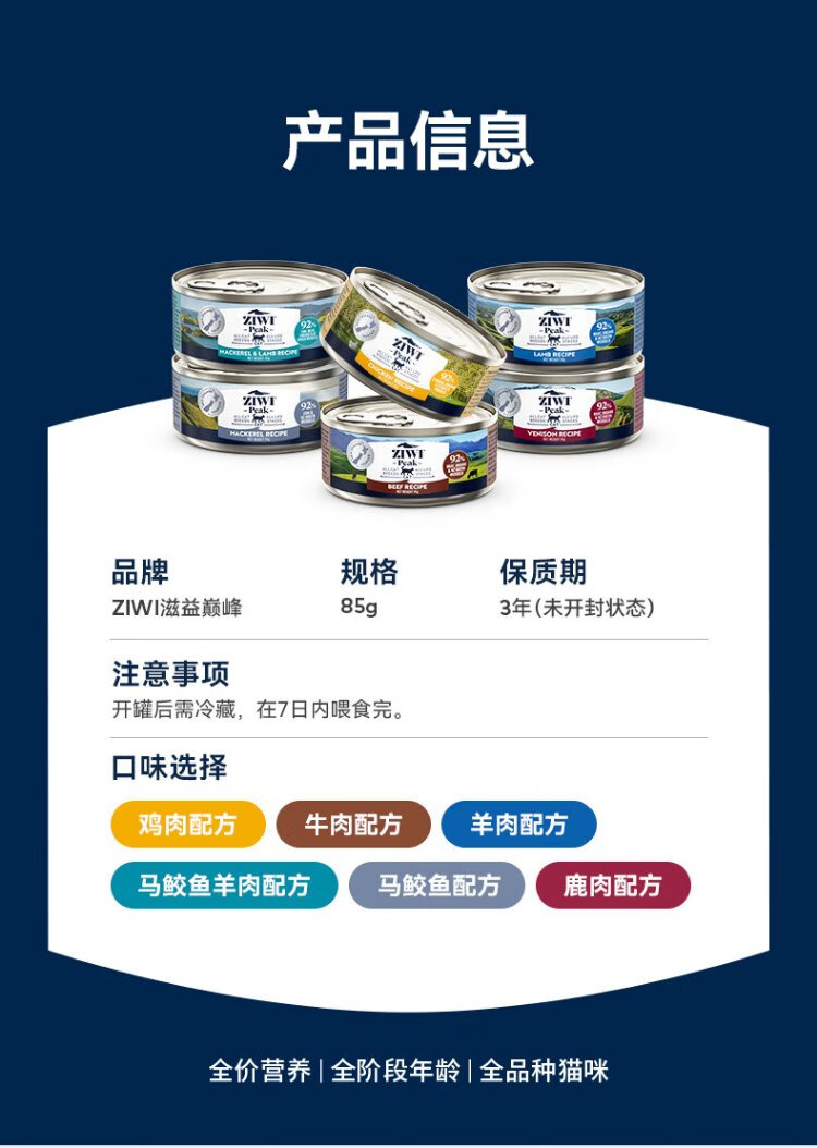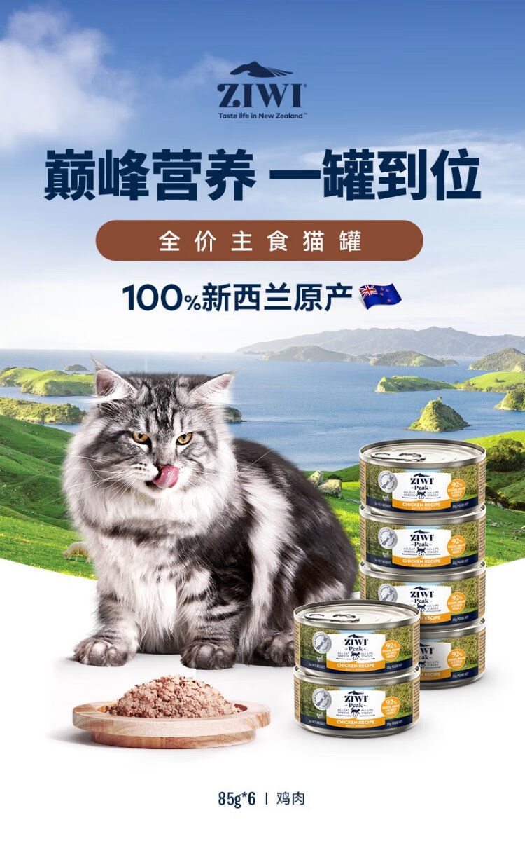 Ziyi Peak (ZIWI) canned cat staple food 85g*6 cans chicken flavored staple food wet food for adult cats and kittens, universally imported from New Zealand