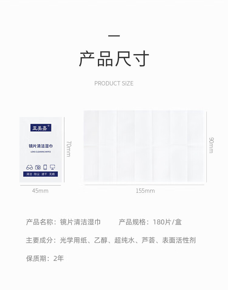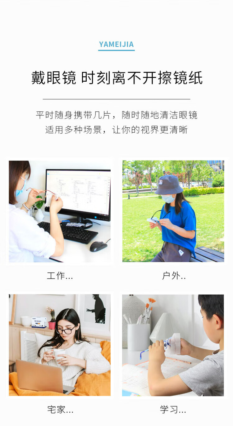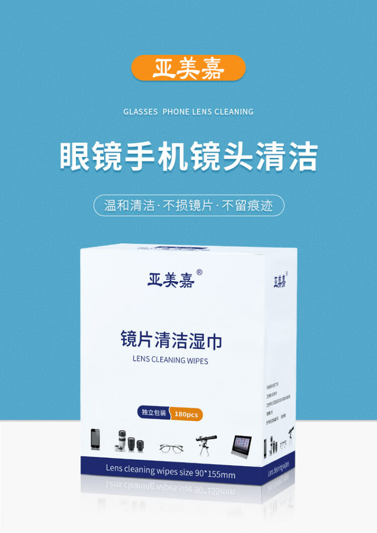 Yameijia glasses cleaning wipes, disposable glasses cloth, lens cleaning paper, mobile phone, computer, TV, screen wipes, 180 pieces