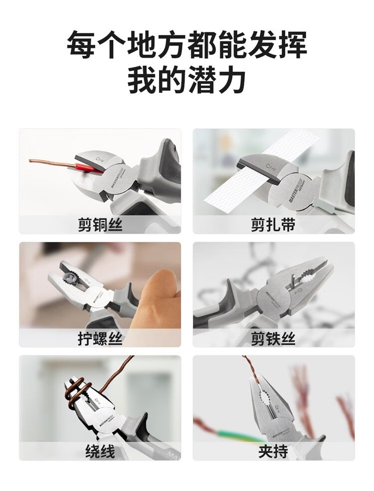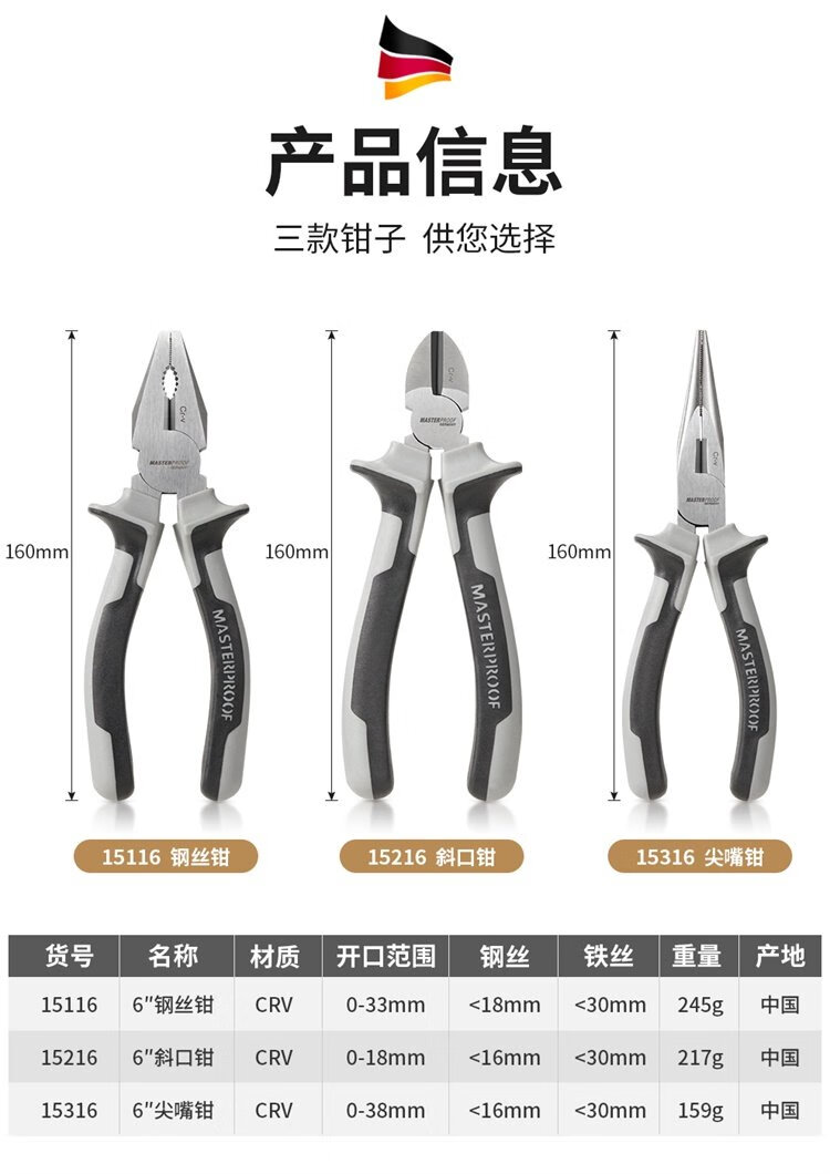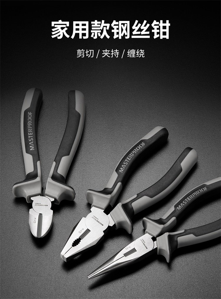 MASTERPROOF professional-grade pliers three-piece set 6-inch wire cutters diagonal pliers needle nose pliers electrician vise pliers set