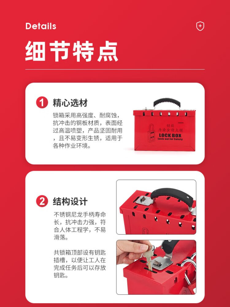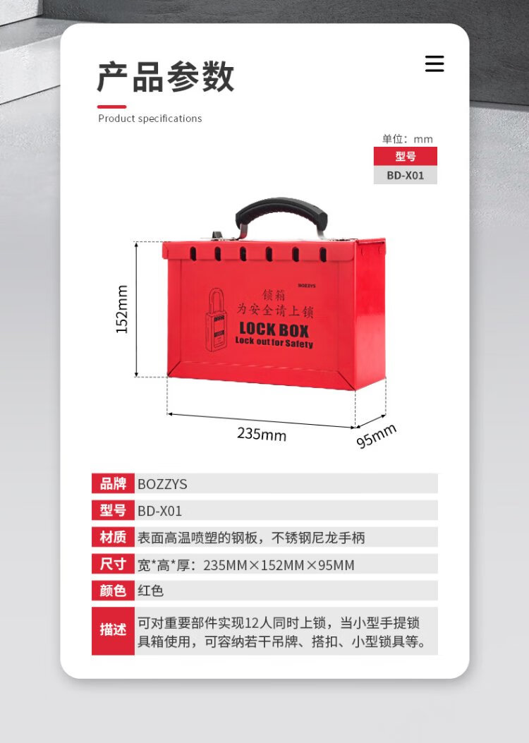 BOZZYS shared lock box portable 12-hole lock management spray energy isolation LOTO industrial safety lock box 230*152*95MM BD-X01