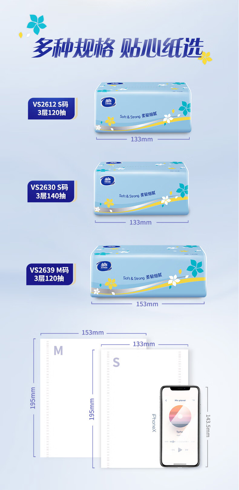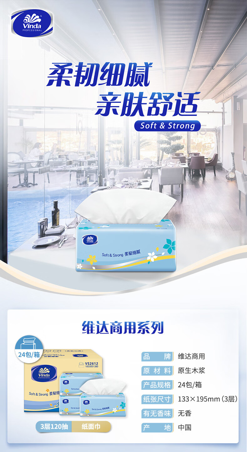 Vinda tissue paper 3 layers 120 sheets * 24 packs S size living room office hotel natural fragrance-free (sold in full box)