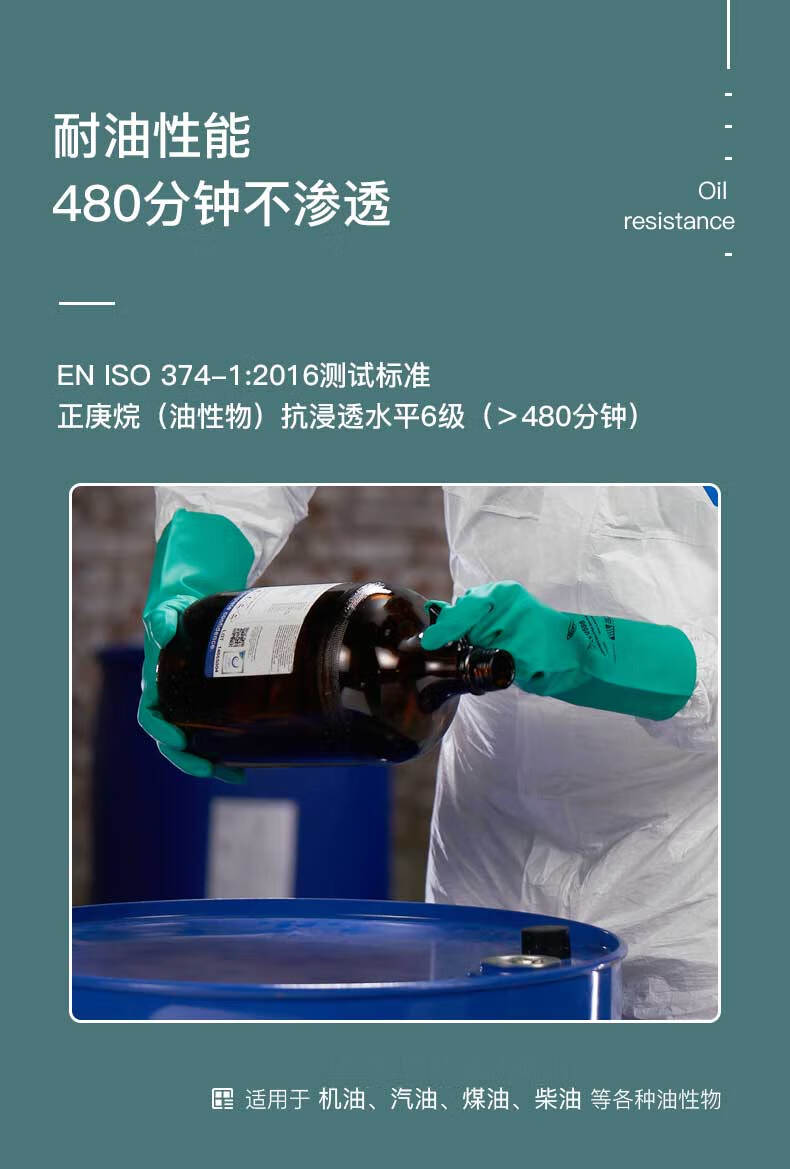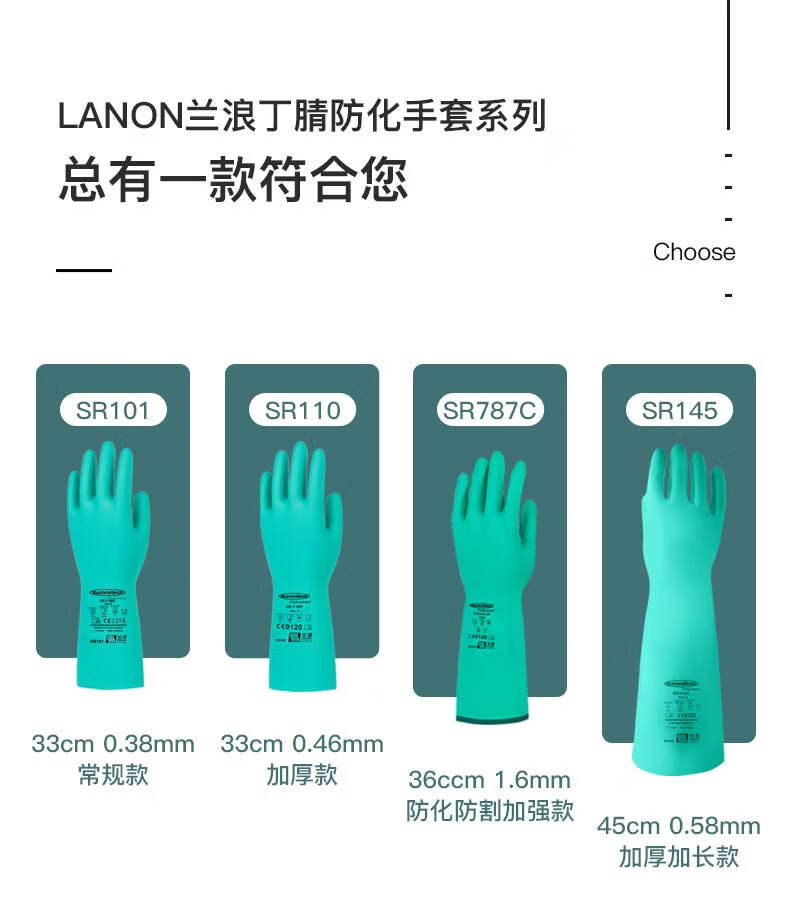 LANON SR101 nitrile chemical resistant gloves, labor protection industrial laboratory cleaning, acid and alkali resistant, oil resistant and non-slip 1 pair L