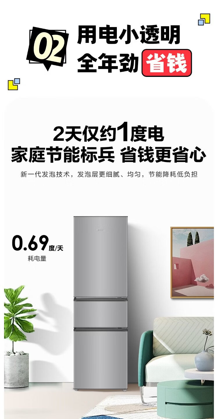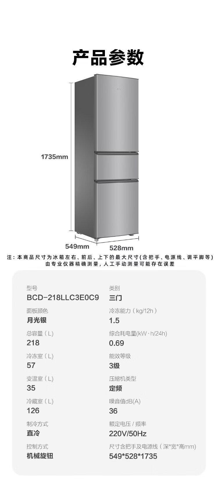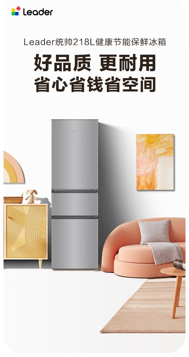 Leader Haier refrigerator produces Yuexiang series 218L three-door household small refrigerator direct cooling soft freezer refrigerator BCD-218LLC3E0C9 trade-in