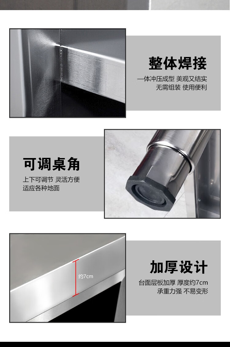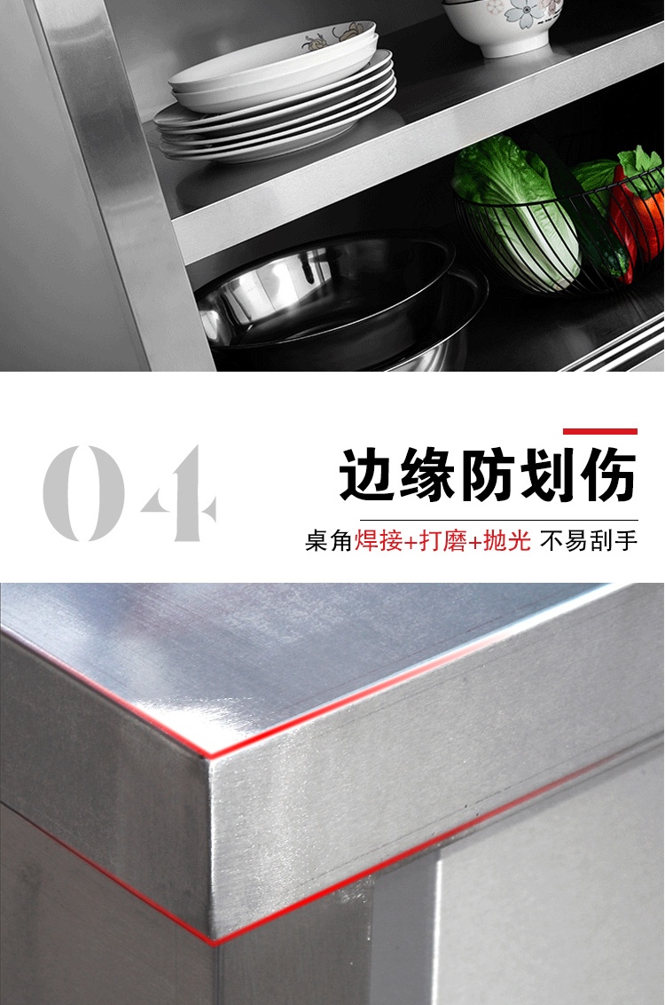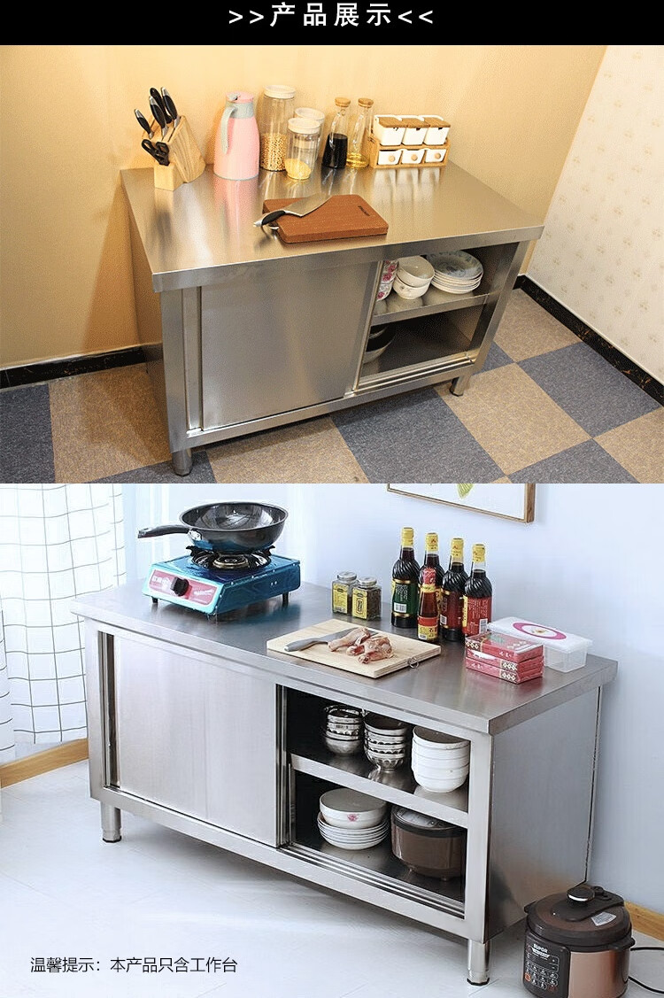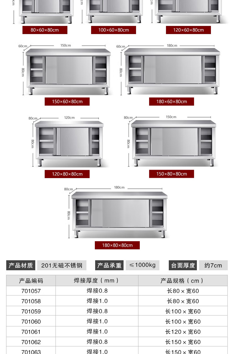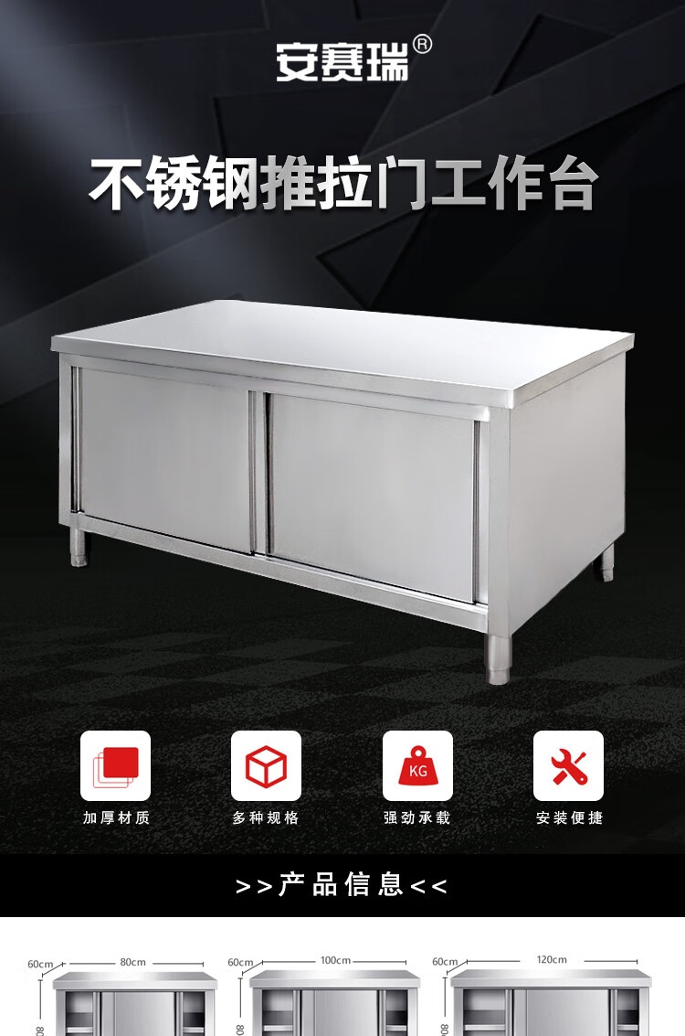Ansery stainless steel sliding door workbench, canteen kitchen thickened work surface, load table storage cabinet with chopping board, length 180cm, width 80cm, height 80cm, thickness 1.0mm 701071