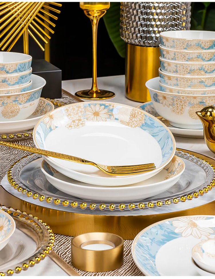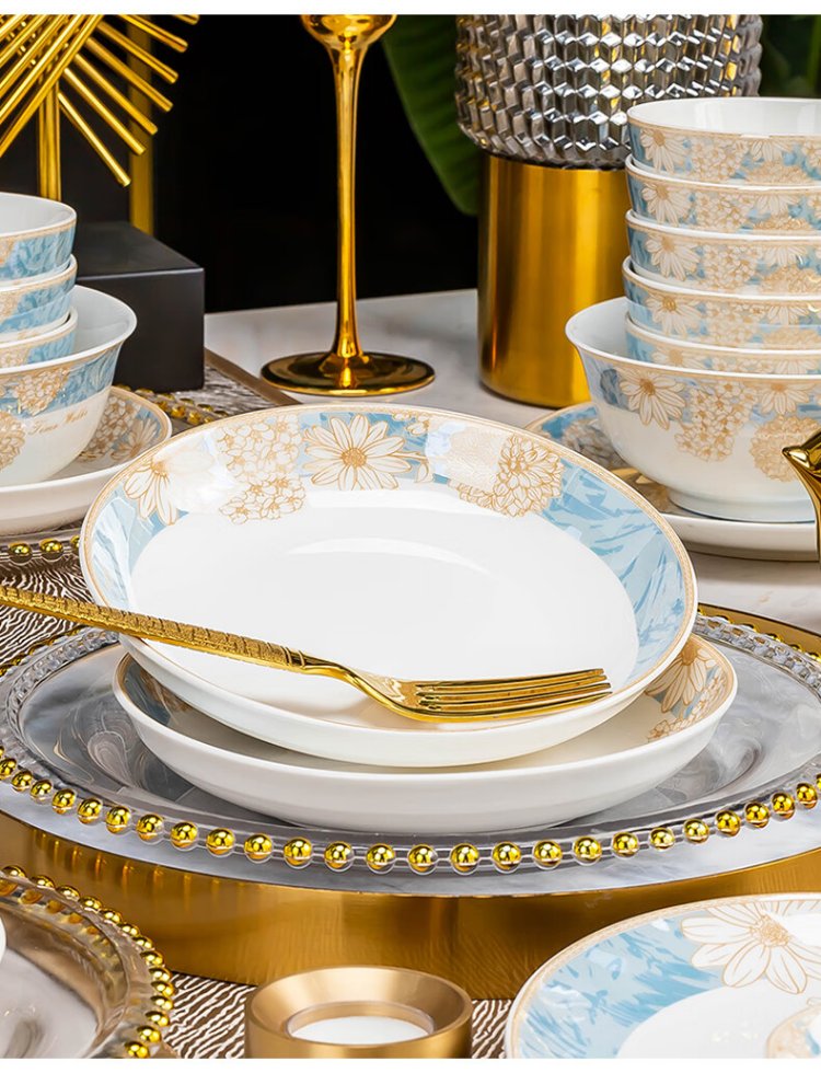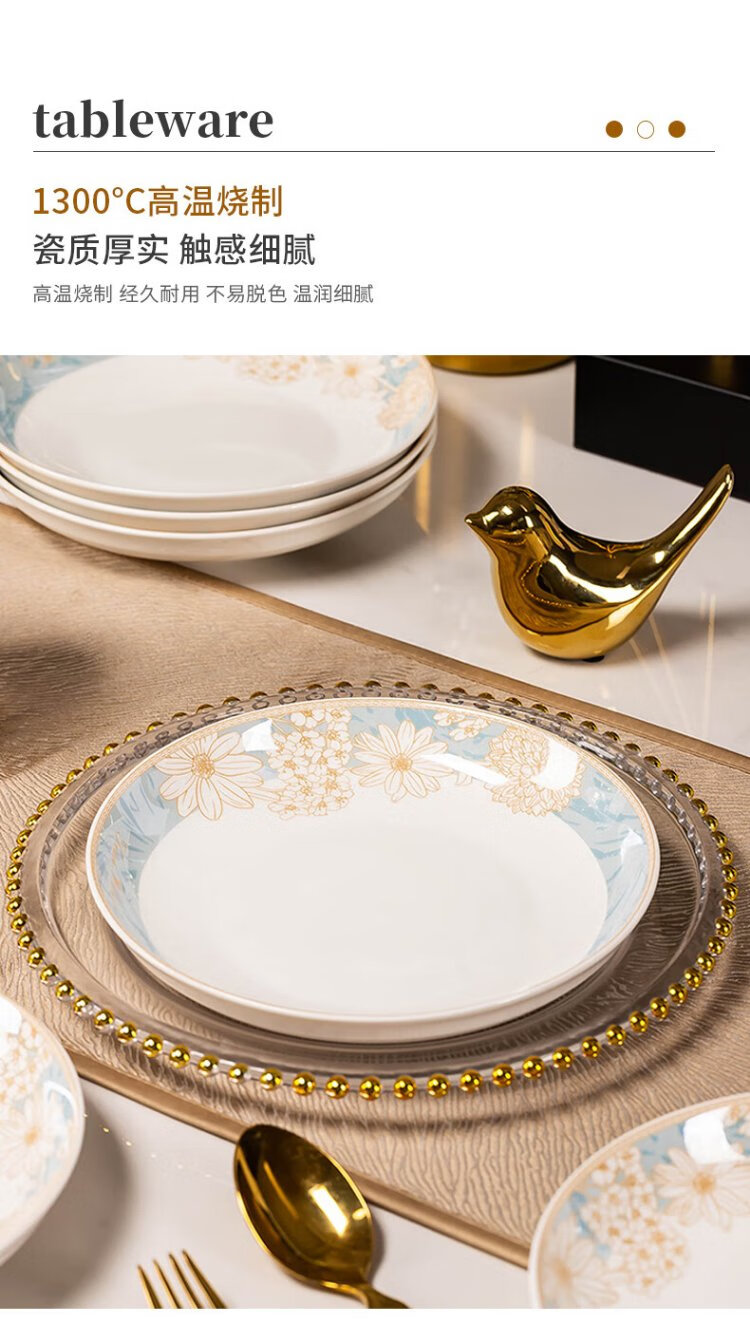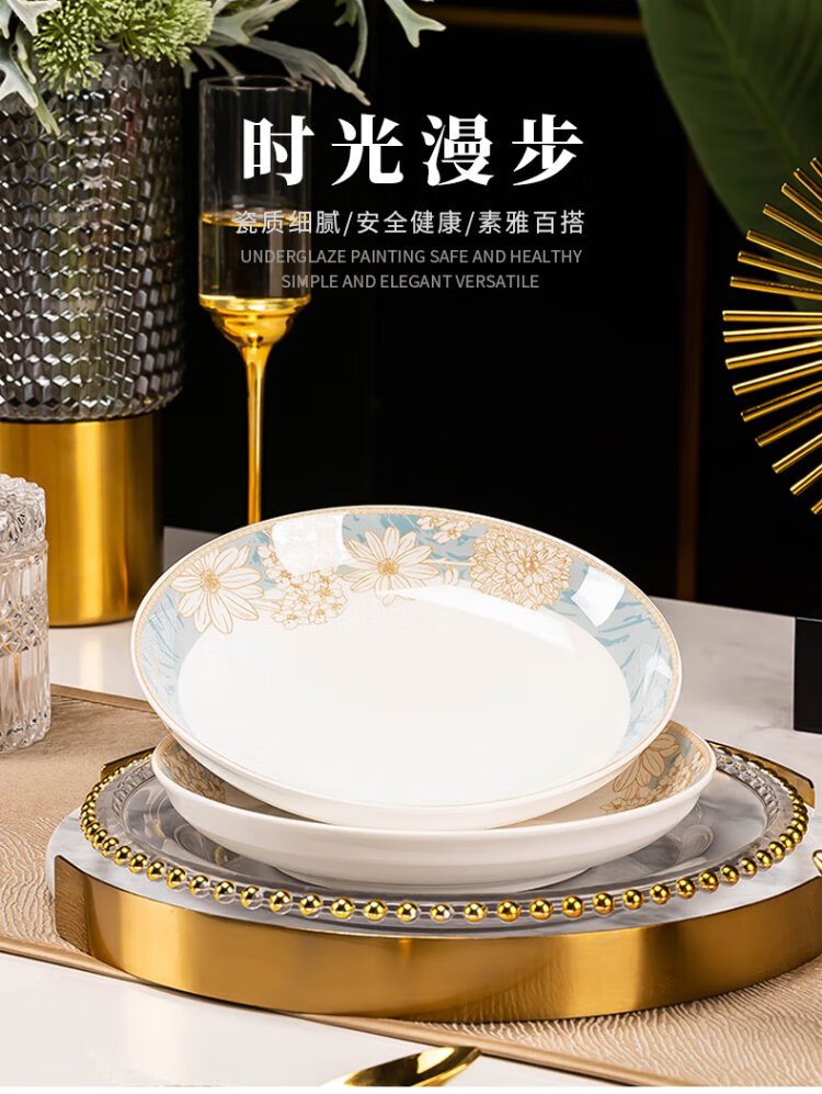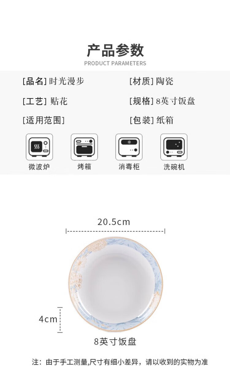 Haoya Jingdezhen Ceramic Plate Soup Plate Deep Dish Rice Plate Microwaveable Time Walk 8 Inch 2 Pack