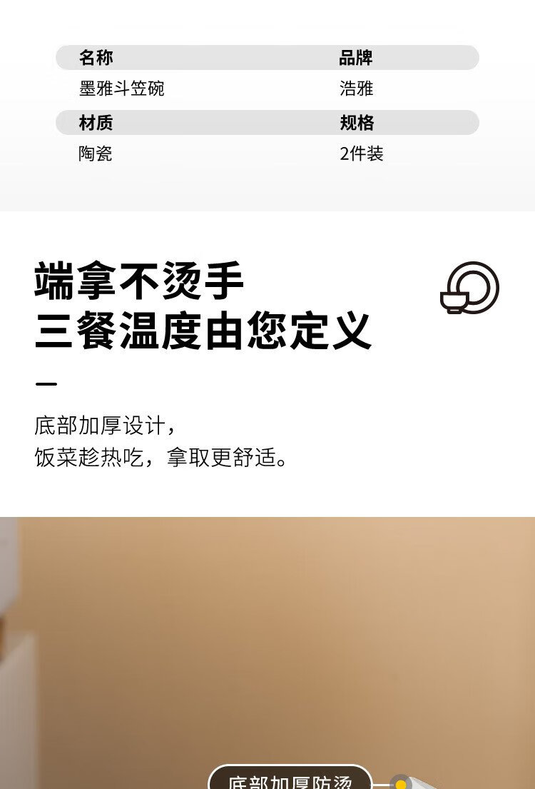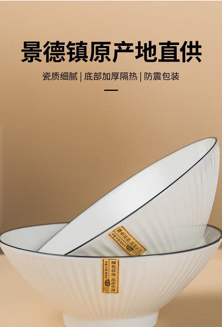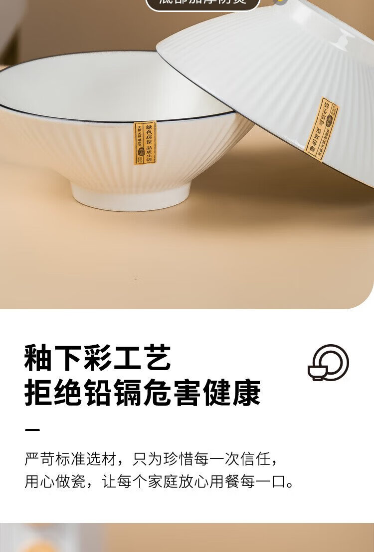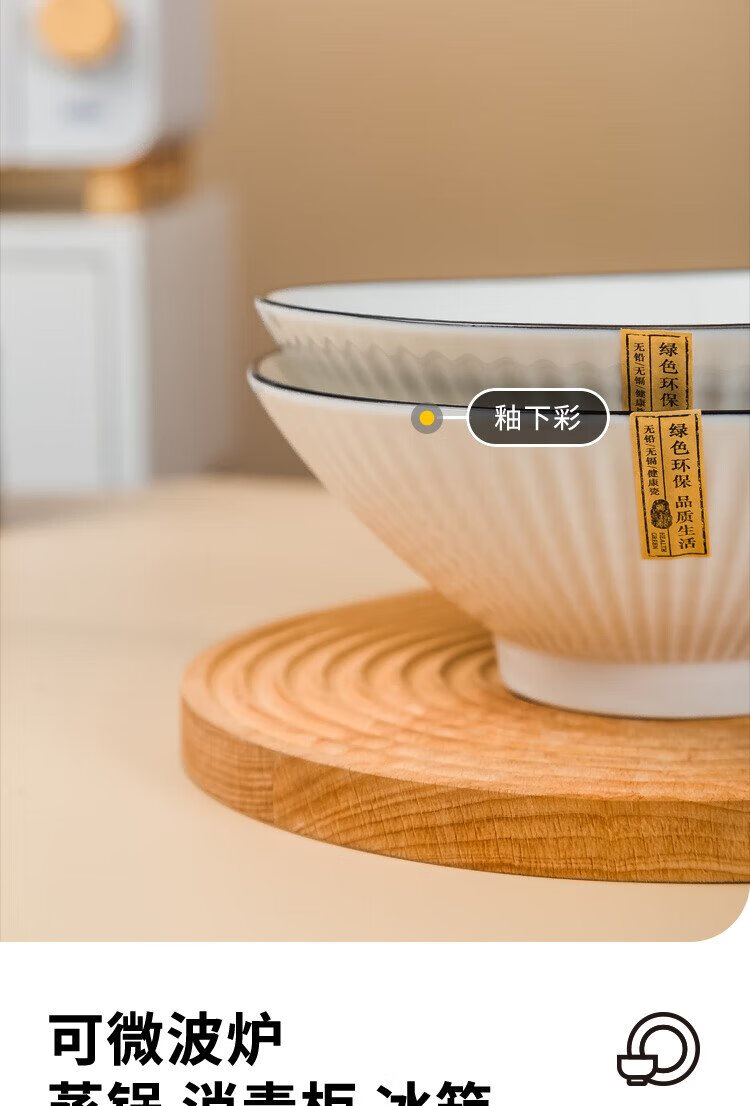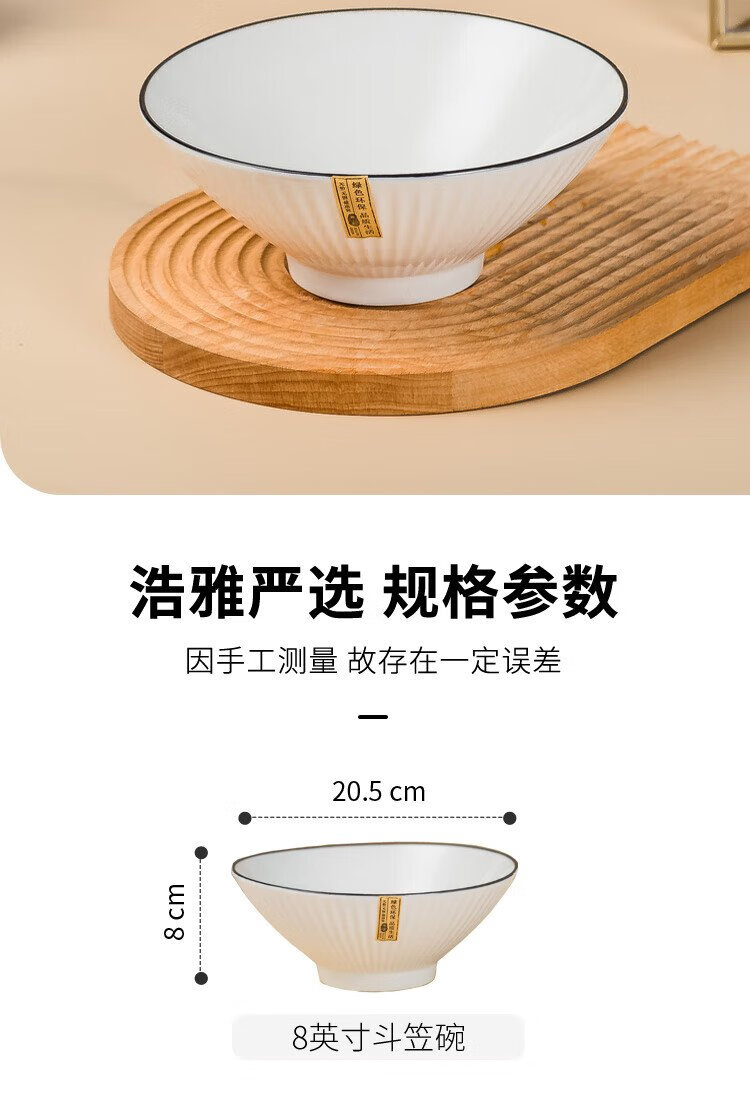 Haoya underglaze color Jingdezhen ceramic tableware ramen bowl soup bowl instant noodle bowl Moya 8-inch bamboo hat bowl 2 pack