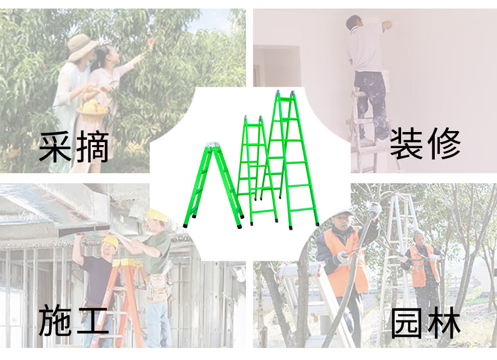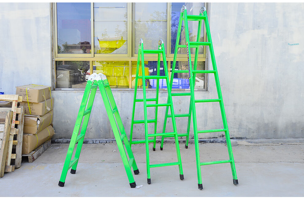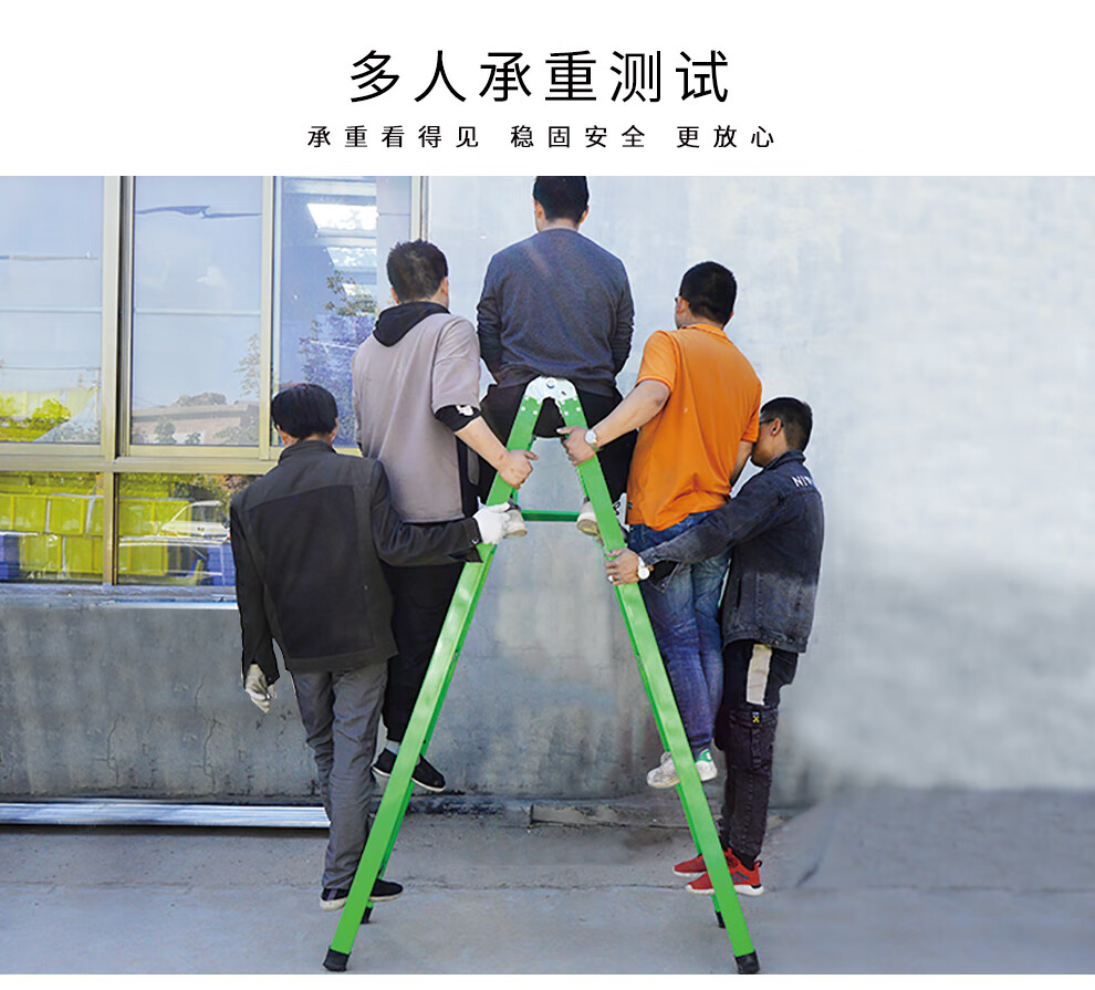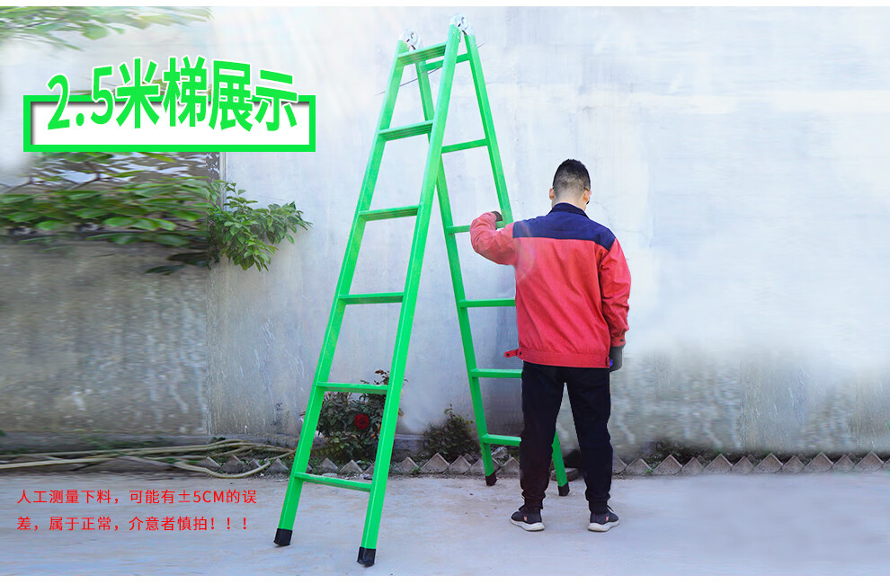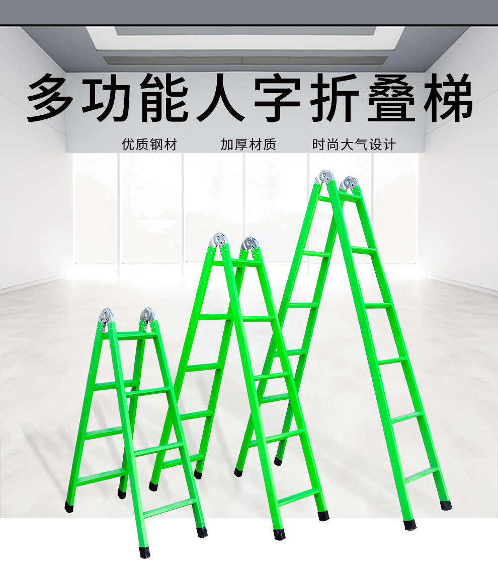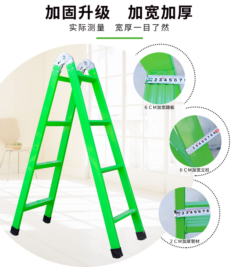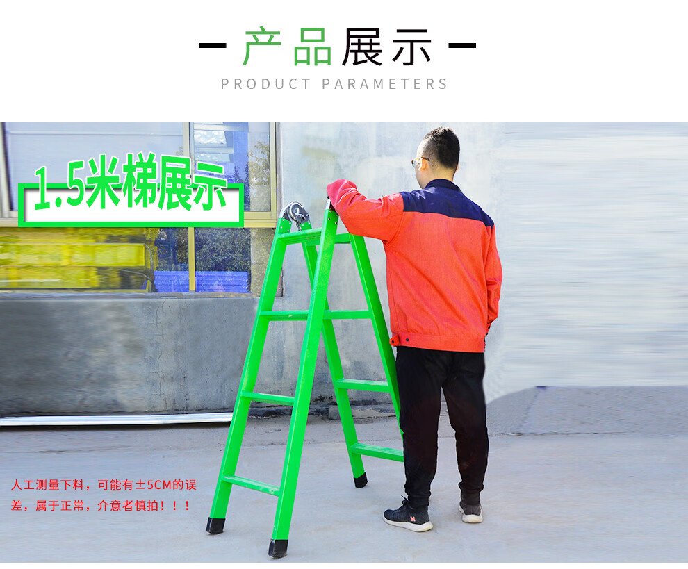 Qilu Anran Ladder Folding Ladder Multifunctional Outdoor Double Side Ladder Metal Ladder Portable Four Step Ladder Engineering Stair Herringbone Ladder Green 1.5 Meters