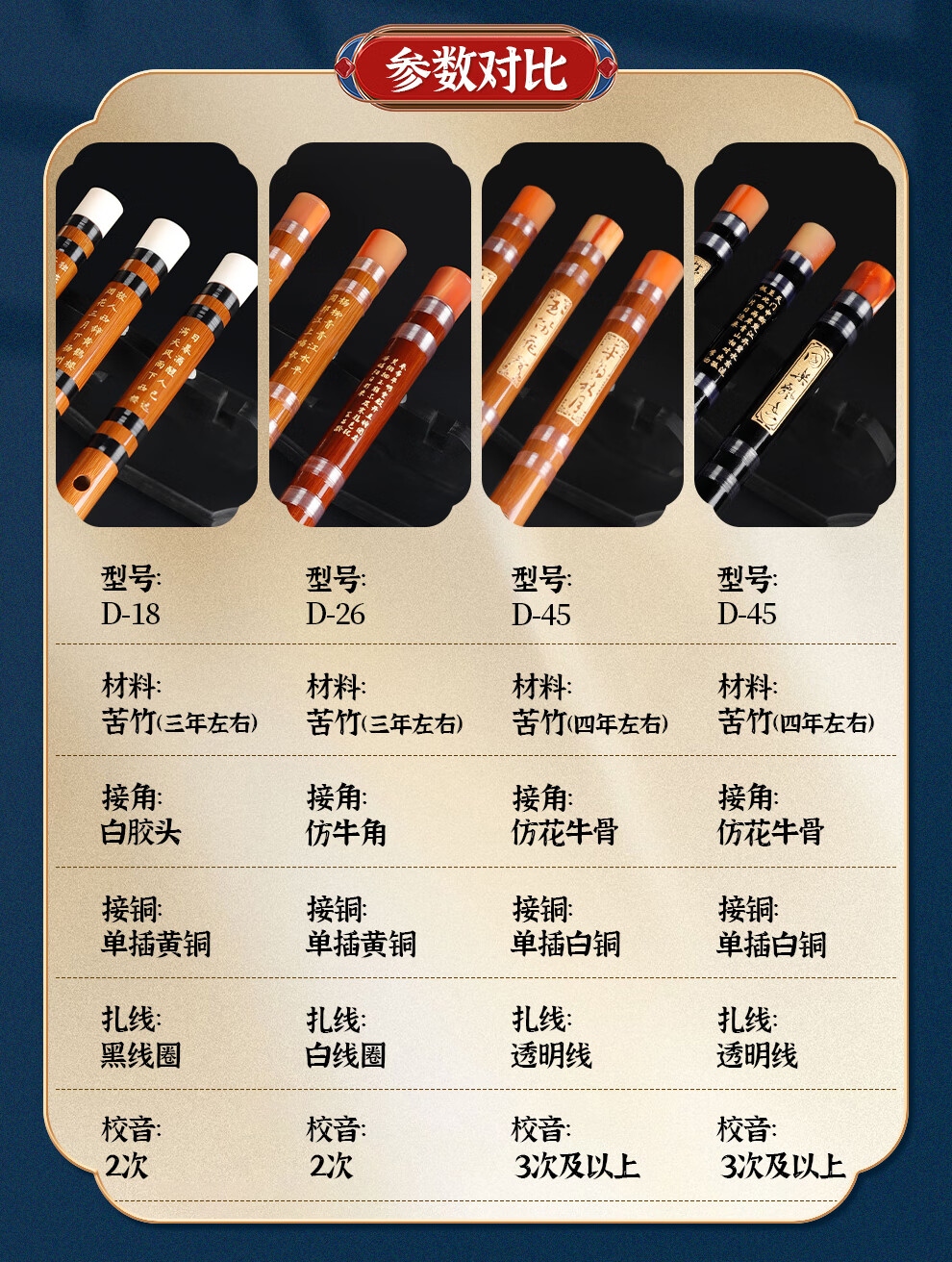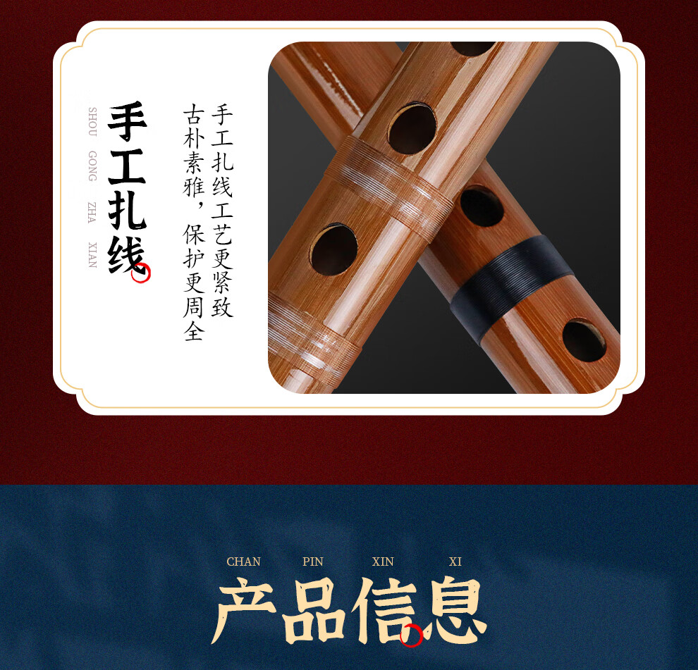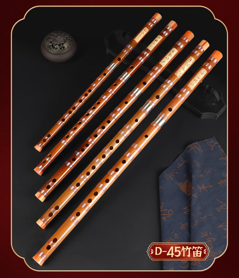 Minsine Bamboo Refined Flute Bamboo Flute E Key Single Insert White Copper Professional Flute National Wind Instrument D45 Black
