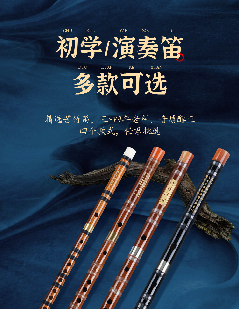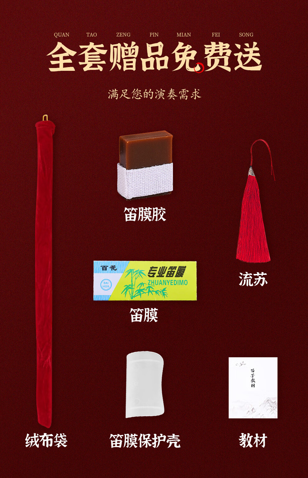 Minsine Bamboo Refined Flute Bamboo Flute F Key Single Insert White Copper Professional Flute National Wind Instrument D45 Black