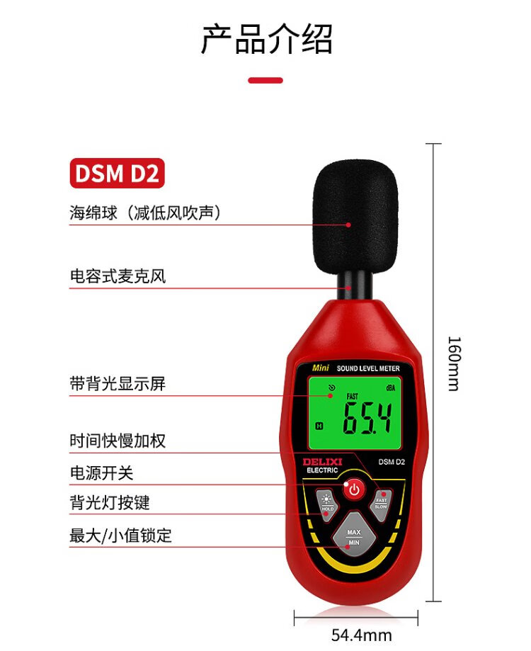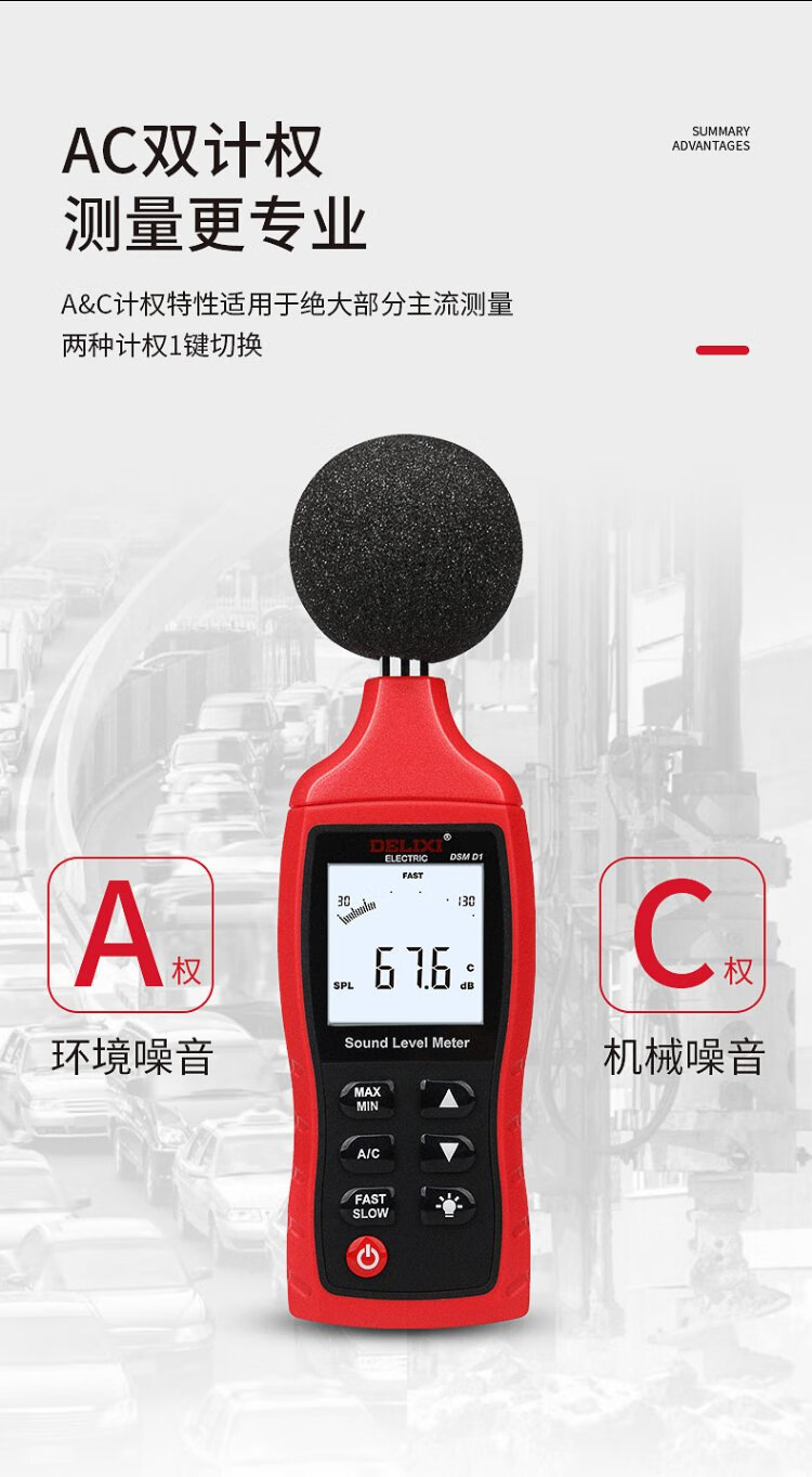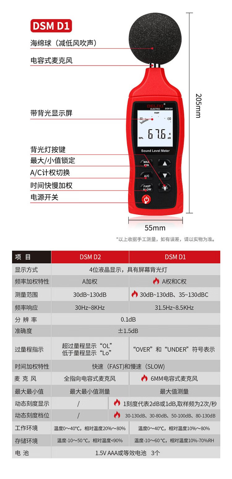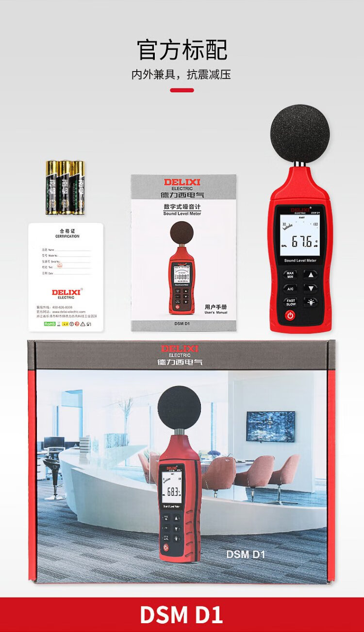 Delixi Electric decibel meter household high-precision noise tester volume detector A/C double weighted D1