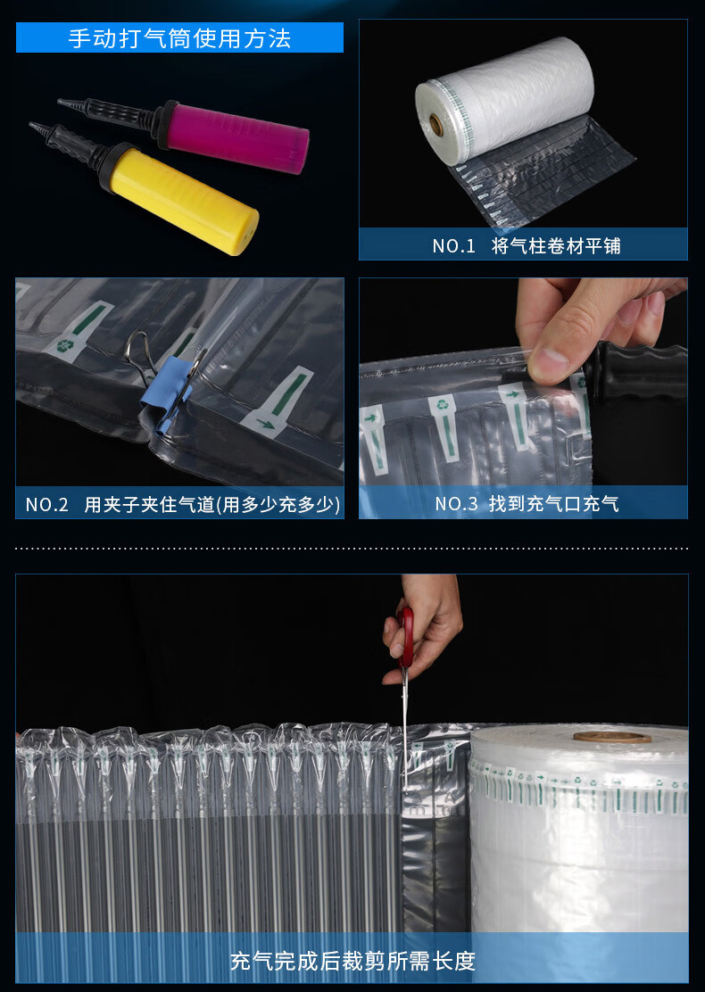 Baige air column bag roll material bubble column shock-proof bubble film bag foam pad foam paper inflatable buffer express packaging self-sealing protective filler 20cm*50m air pump