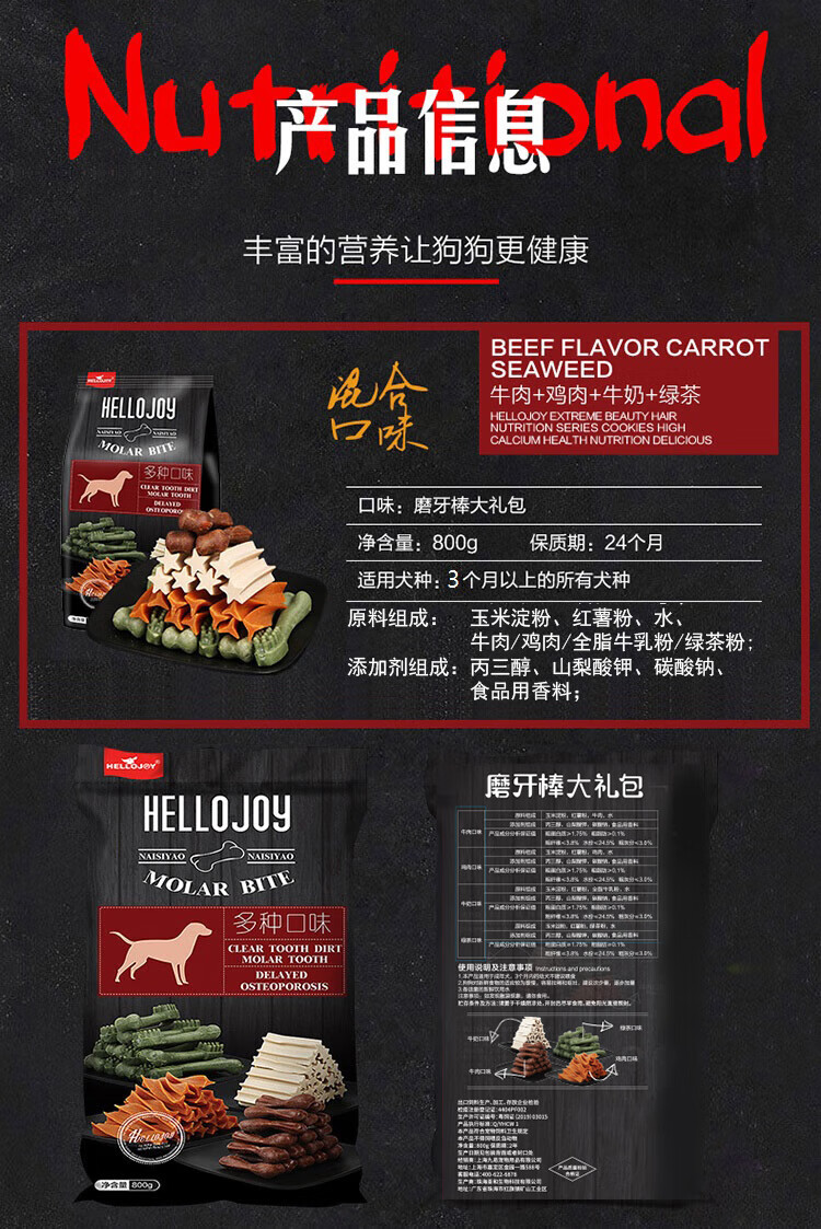 HELLOJOY Dog Snacks Teeth Stick 800g Small and Medium-sized Dogs Adult Puppies Teeth Cleaning Bone Resistant Bite Bone Teeth Stick Mixed Flavor