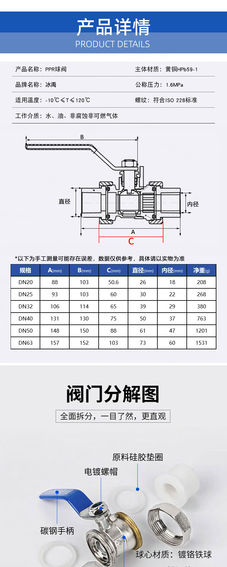 Bingyu BYyc-177 Dang/next day delivery PPR brass union ball valve electroplated double union nickel plated valve DN20