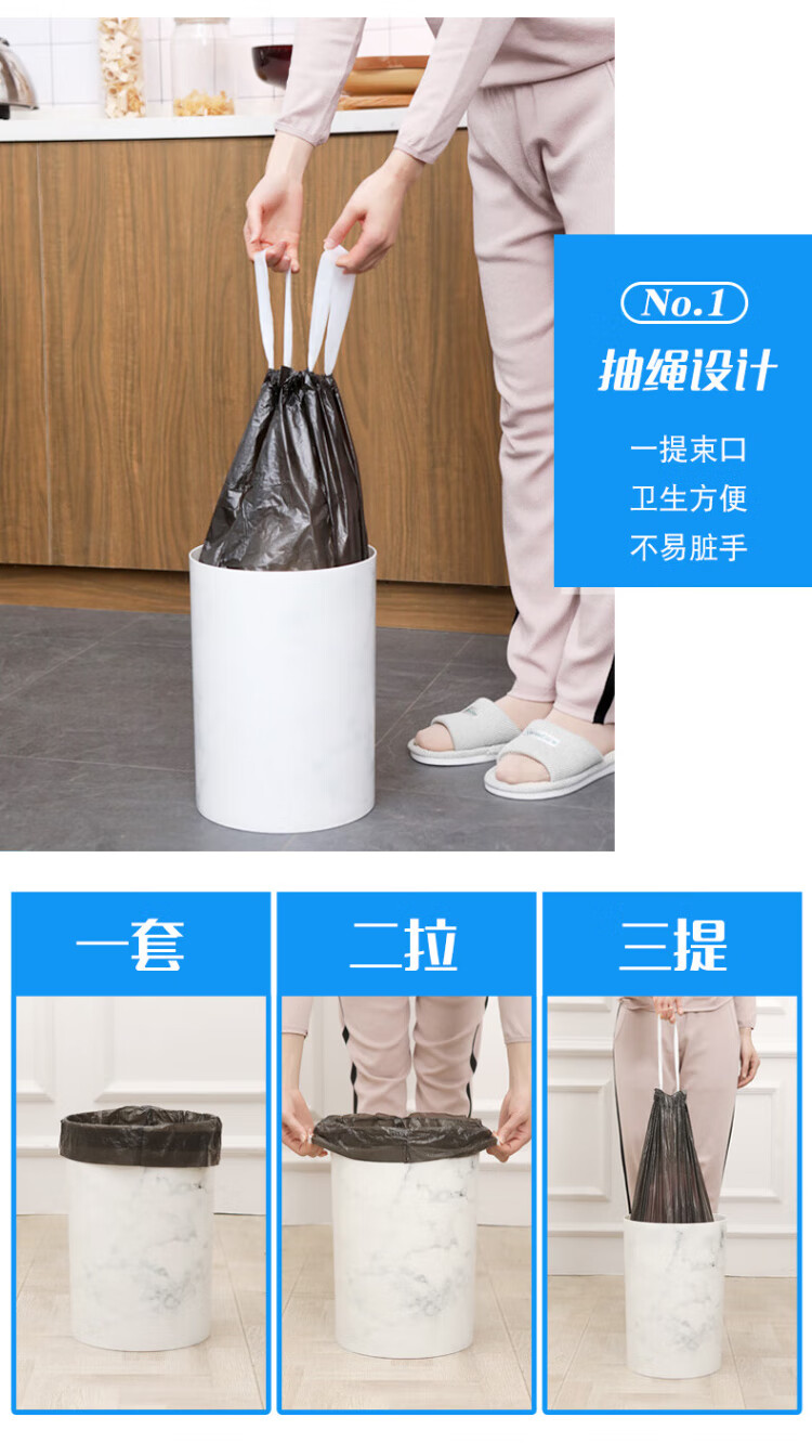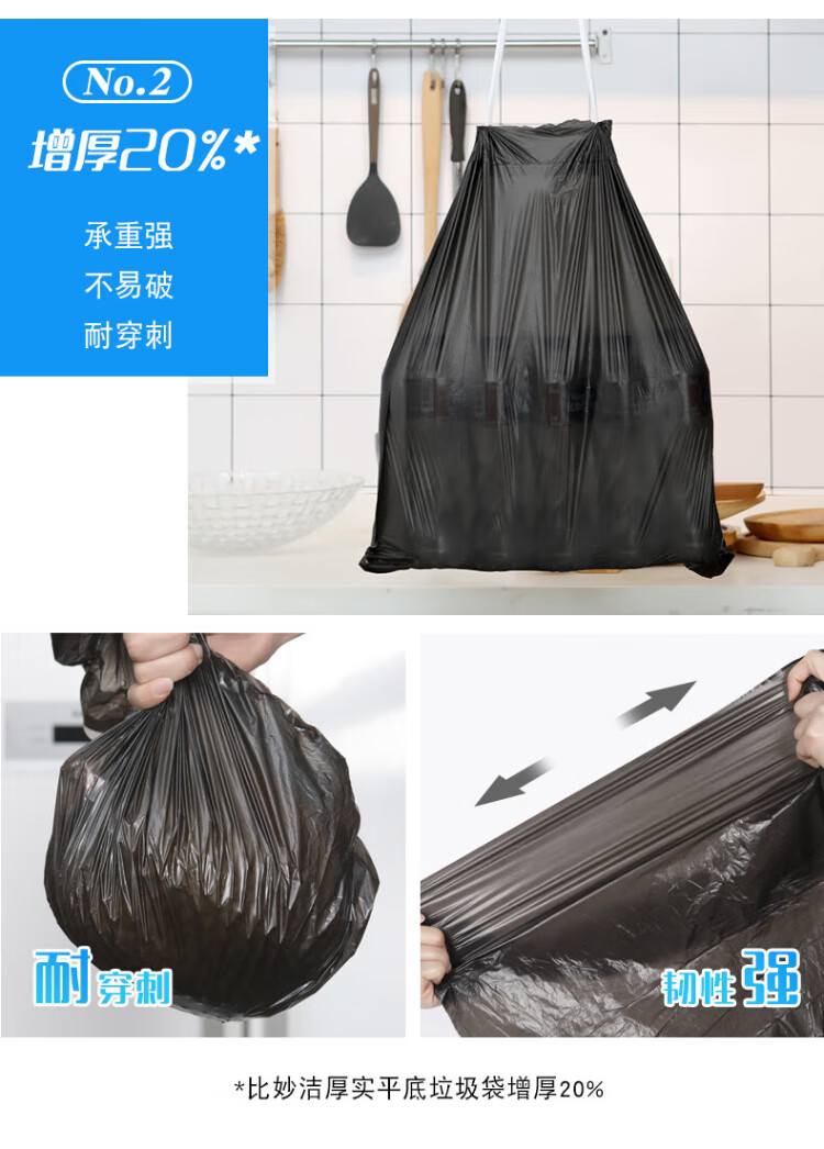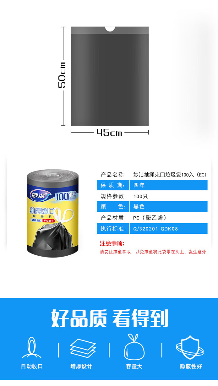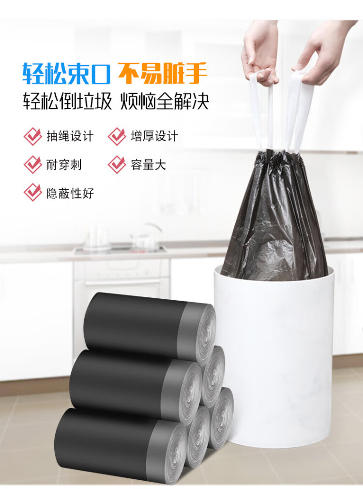Miaojie drawstring garbage bags black 45*50cm 100 pieces single side 1.0 wire point break medium size kitchen use